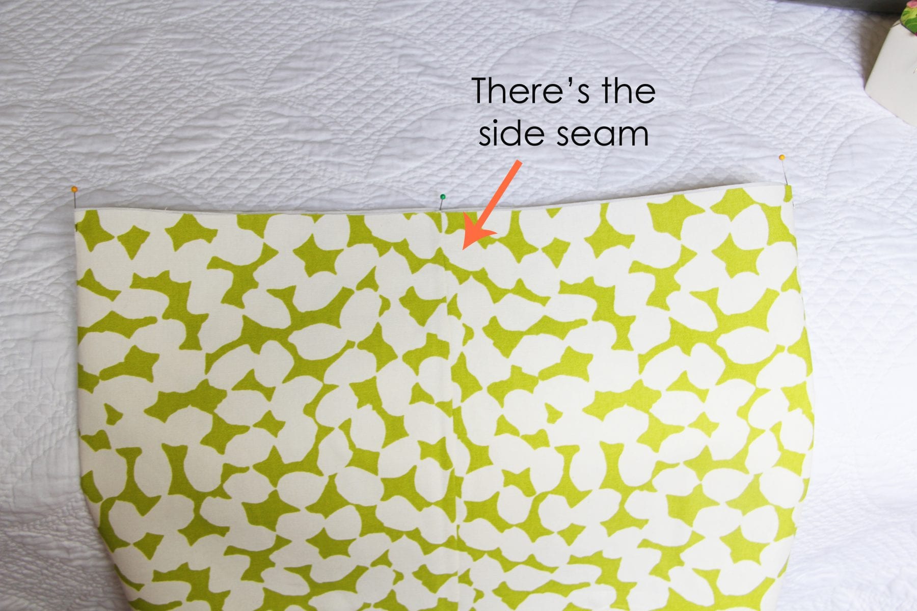 Line up the back seam of the outer fabric with the side seam of the lining fabric.