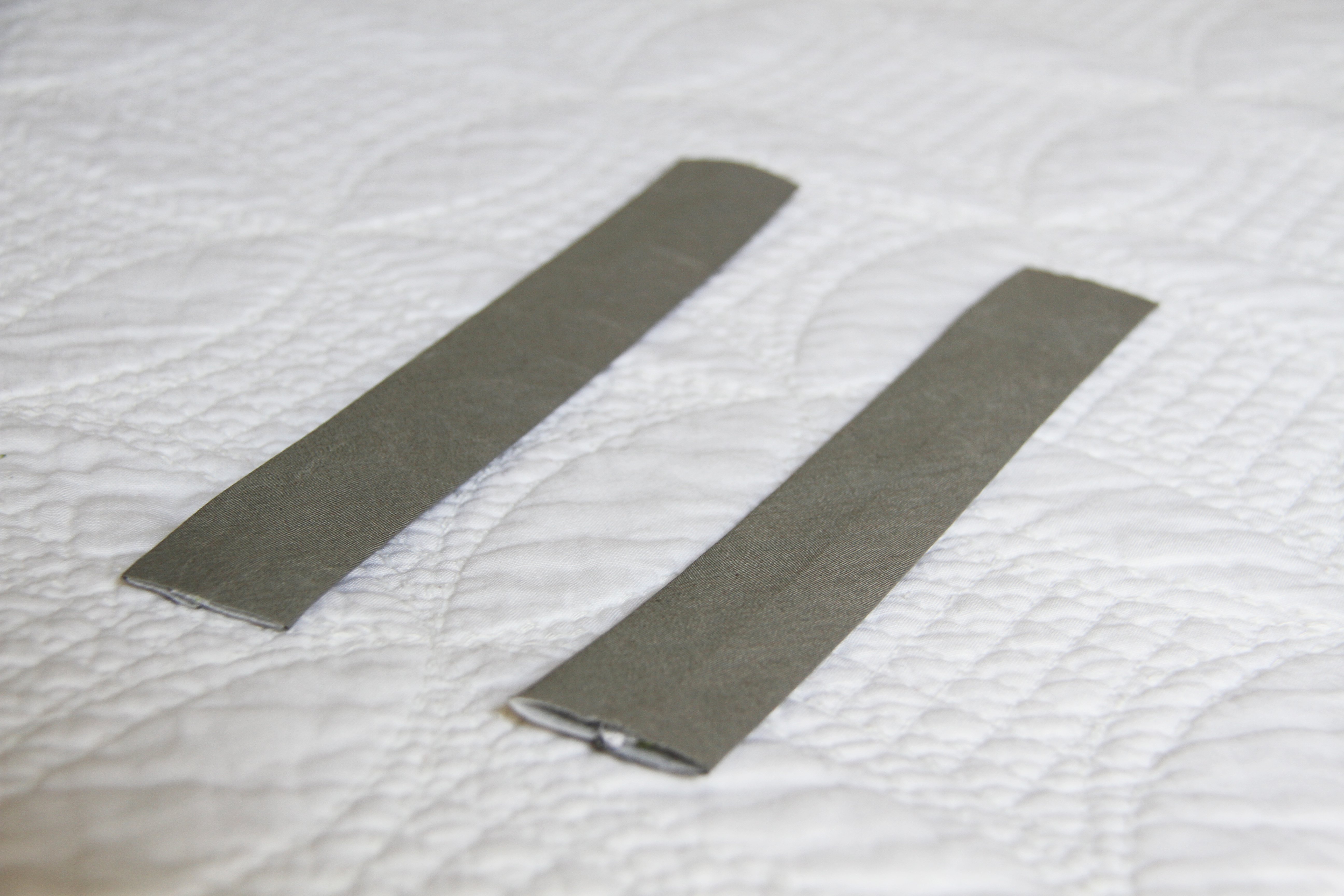 Next, you’ll be attaching handles on the sides.  Cut out 2 strips of fabric that are 8.5 x 3 inches.  Fold each strip together lengthwise and sew the long edges together using a 1/4 inch seam allowance.  Then turn each tube right side out.  (Need help turning a tube right side out?  Click here)