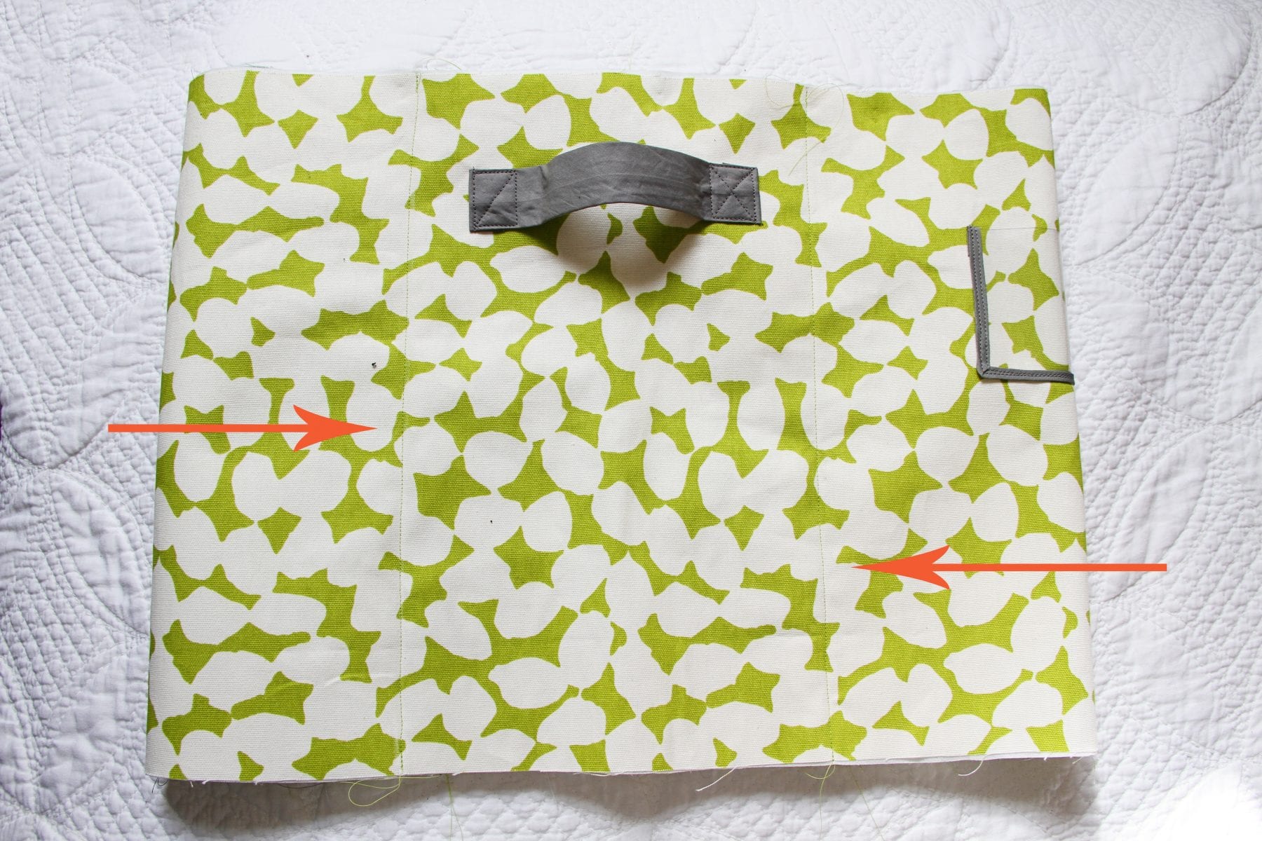 Here’s a view from the side.   The orange arrows are pointing to the seams that are 8 1/2 inches apart on the side.