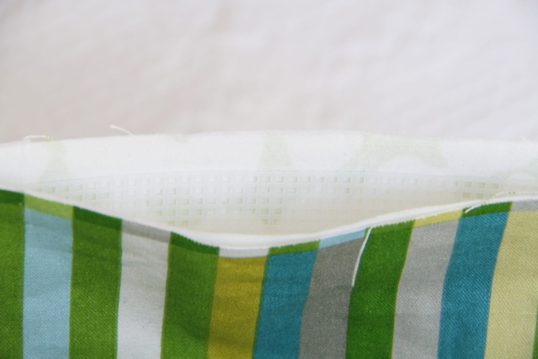 But what’s keeping those bins nice and upright?  Nope, not cardboard (though I did consider that).  I slid in pieces of plastic canvas between the layers.  I was actually thinking of using thick sheets of heavy duty plastic but couldn’t find anything that worked as I walked through the craft store.  Until I came upon these.  Worked like a charm.