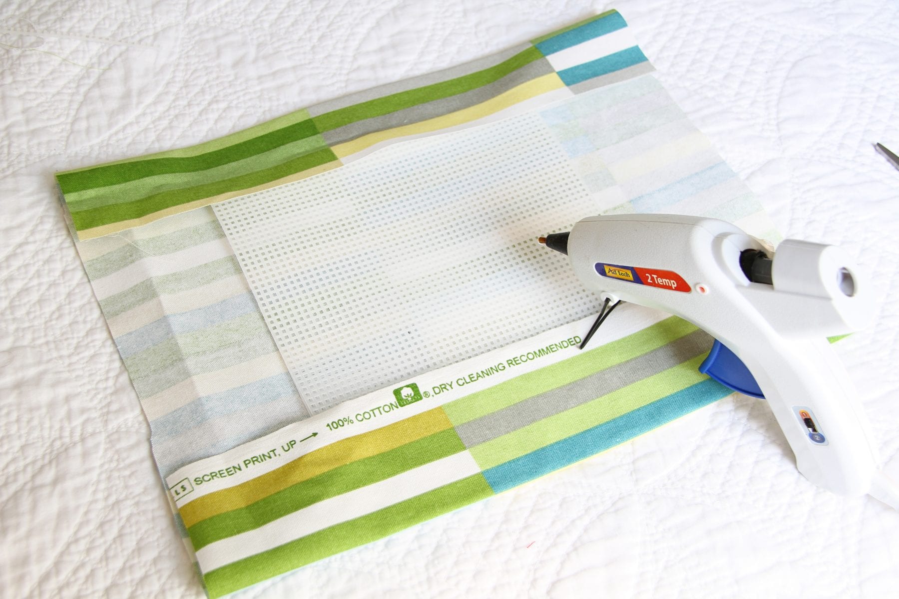 Then use a glue gun to glue the edges around the 2 canvas sheets.
