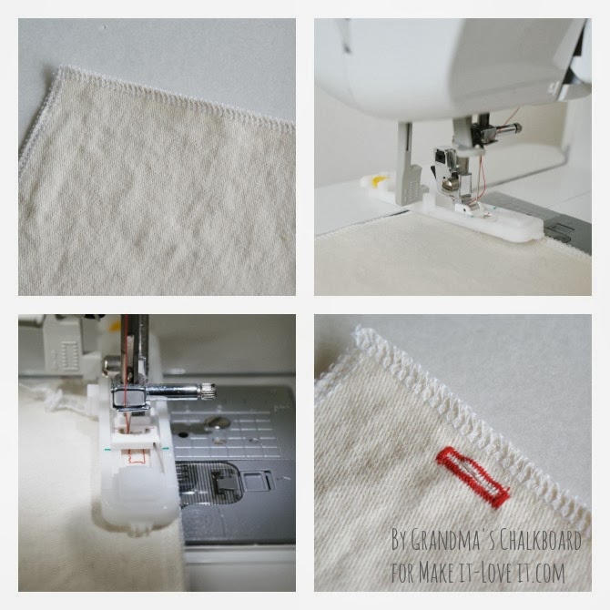 You’ll want to finish off the 4 raw edges of the fabric now with a zig-zag stitch, or a serged edge. This will make the inside of the finished bag neat and tidy.