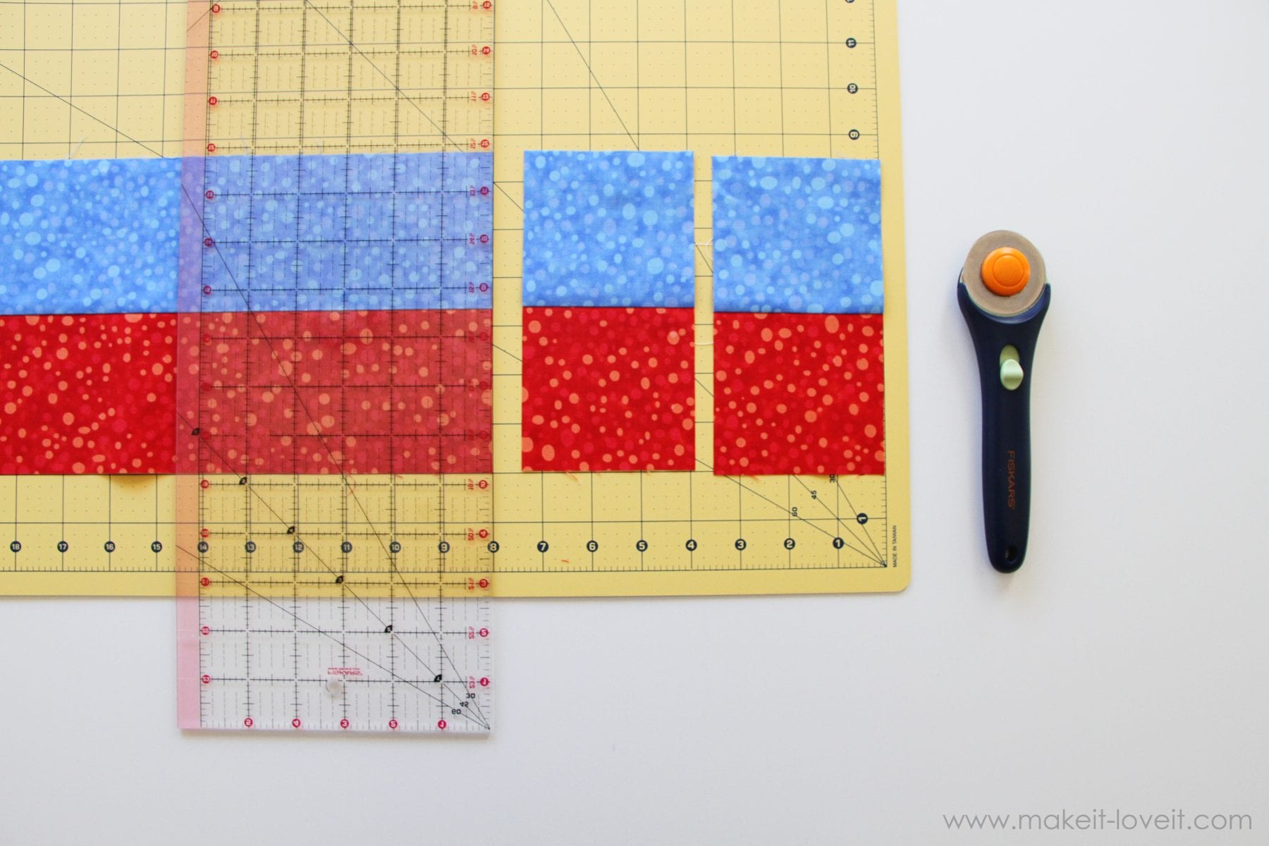 Next, cut each A & B strip that you sewed together, into 3.5 inch sections.