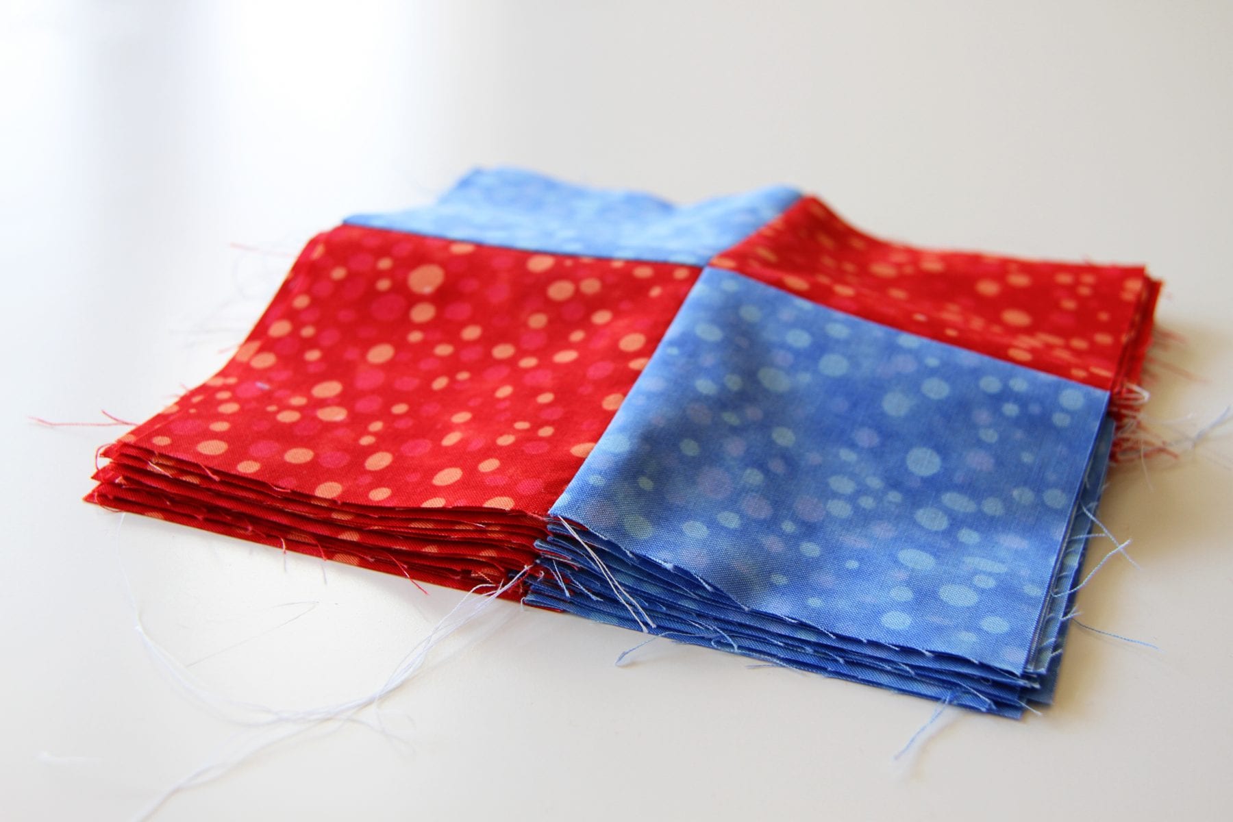If you want to make a Four-Patch Quilt from your stash, go here to find written instructions and how much fabric you’ll need to cut your own pieces.
