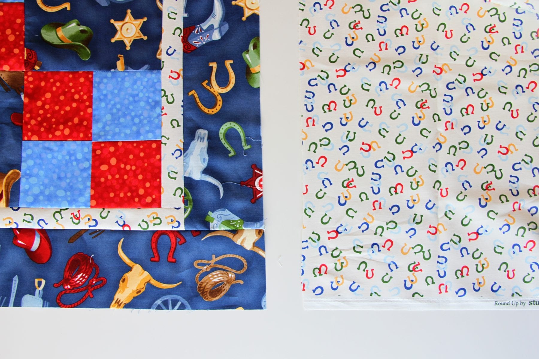 However, if you’d rather use your own fabric, that is fantastic. They just ask that it is bright, cheery, and perfect for young children. Also, the quilt must be approximately 38″- 40″ x 45″- 46″ in size and must be machine quilted. Don’t worry, you can machine quilt straight lines right on your regular ‘ol machine. And because these quilts are small, you can fit a quilt this size under your sewing machine needle.Â