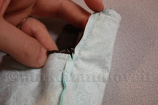 Sew all along the sides and top of the flap and about a half inch along the front. (click on the picture to see it bigger.)