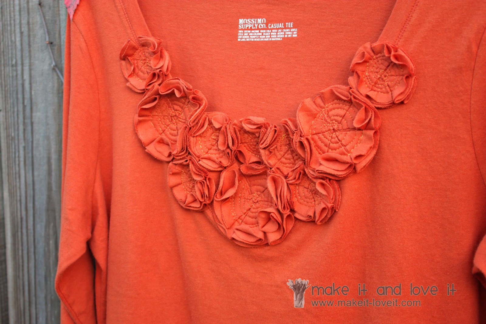 Home » DIY Tutorials » DIY Sewing » Sewing: Repurpose/Upcycle » Embellished Tee: with Multi-Layered Flowers