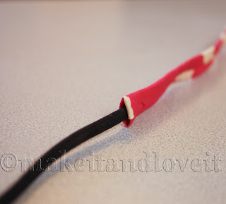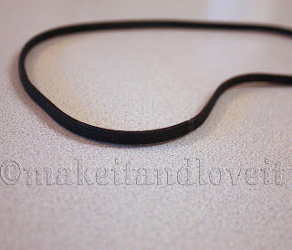 Then cut a piece of elastic 2 inches long. I actually used one of those stretchy headbands that you can buy pretty cheap. They stretch really well like a hair band…….and I wanted it to be snug and nice and stretchy. So I cut one apart……but you can use regular elastic too.