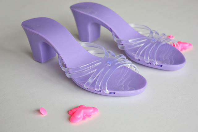 Well, I took some inexpensive dress-up shoes….pulled the plastic butterflies off……..