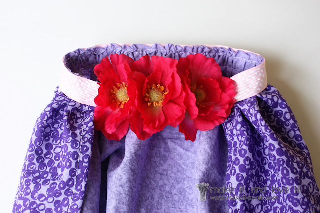 And because Fancy Nancy loves accessories, I added some big fluffy flowers to the front of the cape.