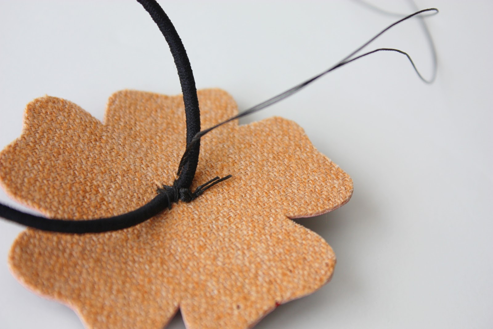 Then I attached the flower to a long strip of the vinyl with hot glue, and added elastic to the back…..just like the one above.