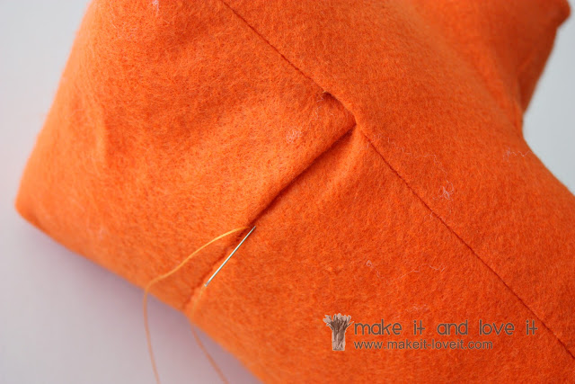 Then tuck the raw ends towards the inside and hand-stitch it closed.