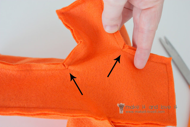 On each side of the truck, the corners that are inverted will pull funny after turning it right side out without clipping it first. So clip right in the corners, making sure to not clip through the seam.