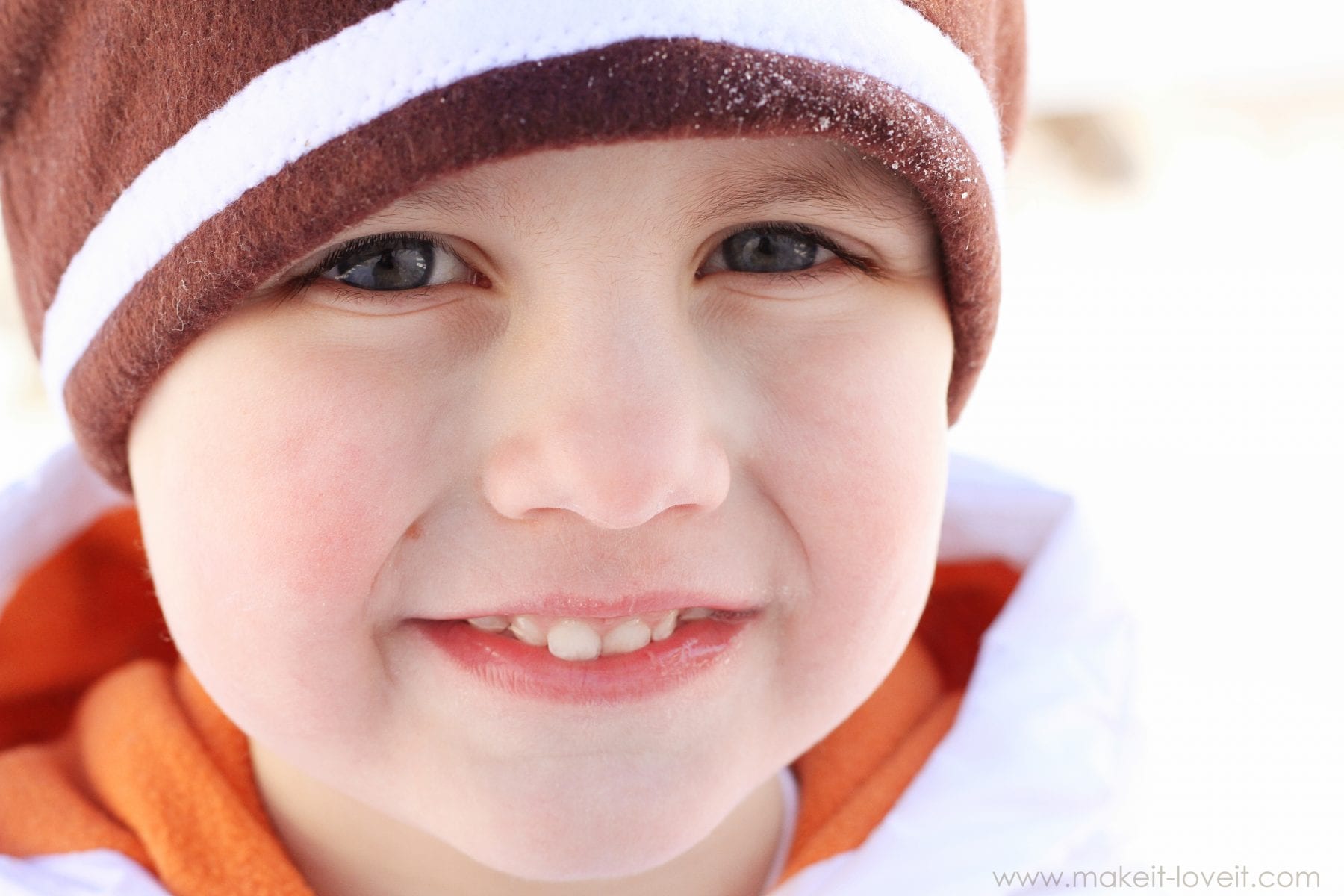 It was coooooold here yesterday in Colorado. The kind of cold that kept us in all day. Until I remembered that we were out of milk and cereal and bread and yogurt and cheese and turkey and whole wheat crackers and bananas. Haha, no biggee. So I was off to the store at 4:30 p.m. and after opening the front door to head outside, I was shocked to see that the freezing temps had turned into an angry blizzard of snowflakes. So we went back inside to add more layers to our bodies, which is when I realized I couldn’t find my little guy’s hat. He has a hood on his coat but there’s something extra cozy about a nice snug hat to keep you warm and then placing a coat hood on top of that. Layers are good. I’m sure his other hat will be found under a couch cushion or in the back of the shoe closet one of these days…….but I couldn’t go to bed last night until I made the little mister a new hat.