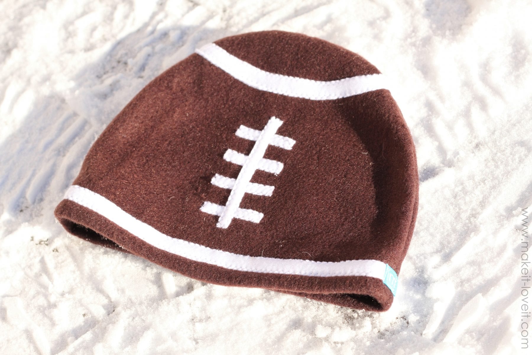 You’re little football hat is ready to keep some little guy cozy.