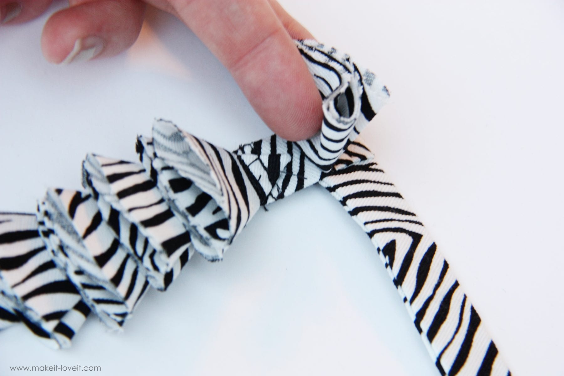 Now, for the ruffle. It’s not a standard ruffle……just some textured looking fabric. But all it is, is circles. And because it’s cut into a circle, it’s mostly cut on the bias. And that helps keeping it from fraying. It may fray just a bit but that will only add to the fluffiness of the look. If you’re concerned, apply some ‘fray check’ to the edges.