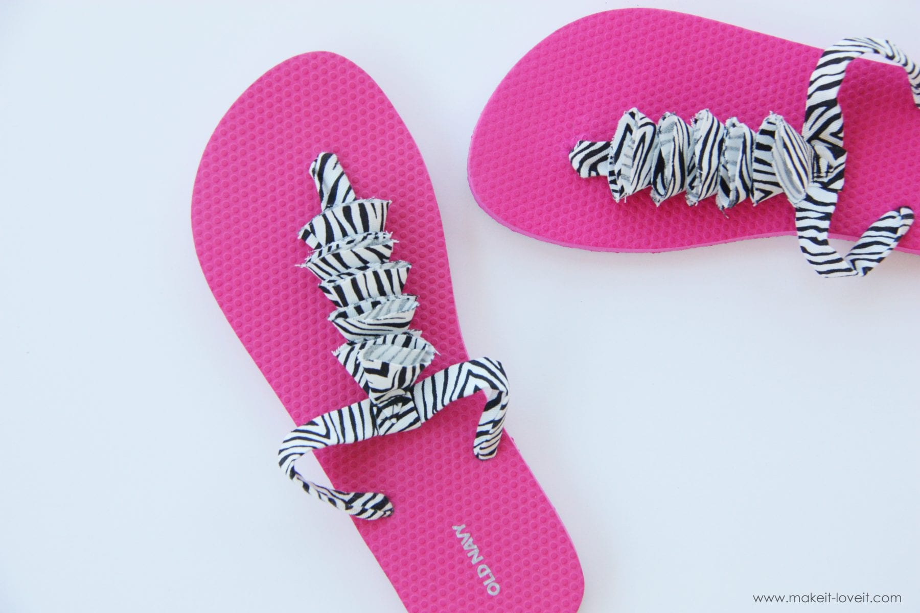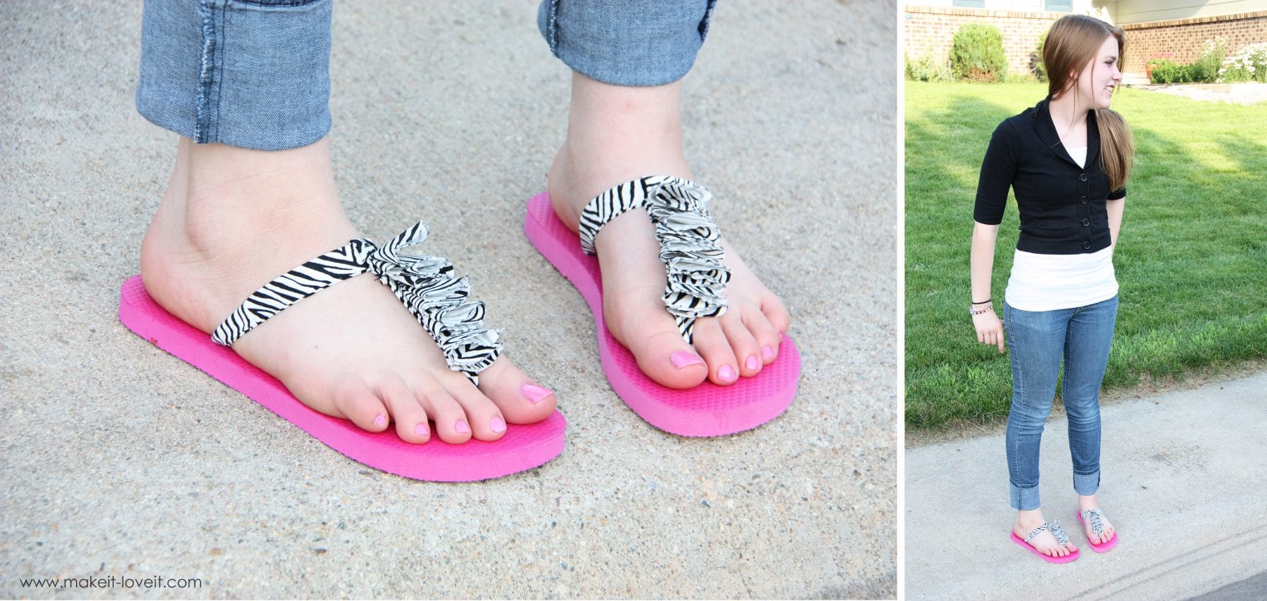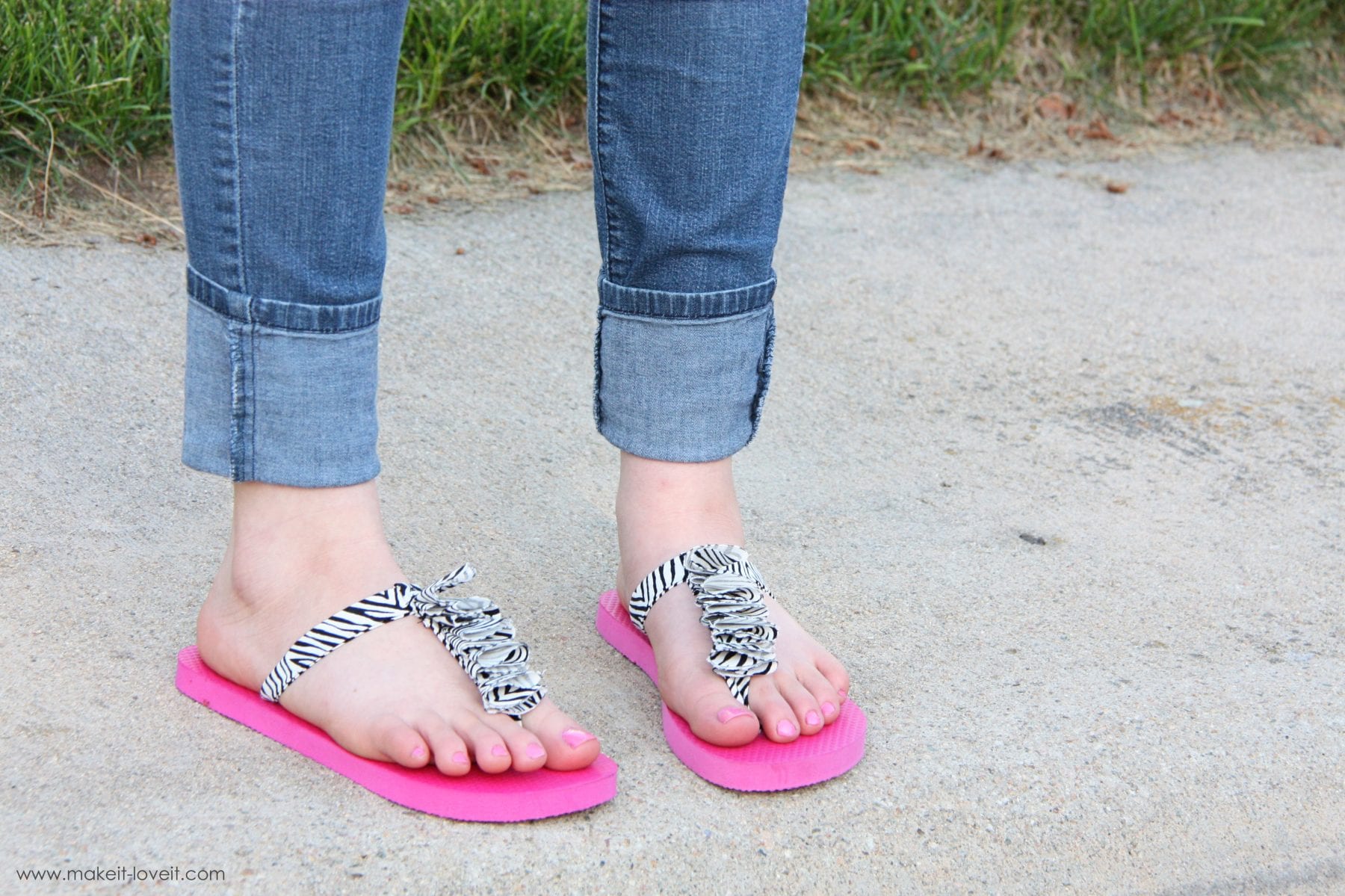 One more way to create your own little custom pair of flip-flops…….from an old pair in the closet, or a cheapy pair at the store.