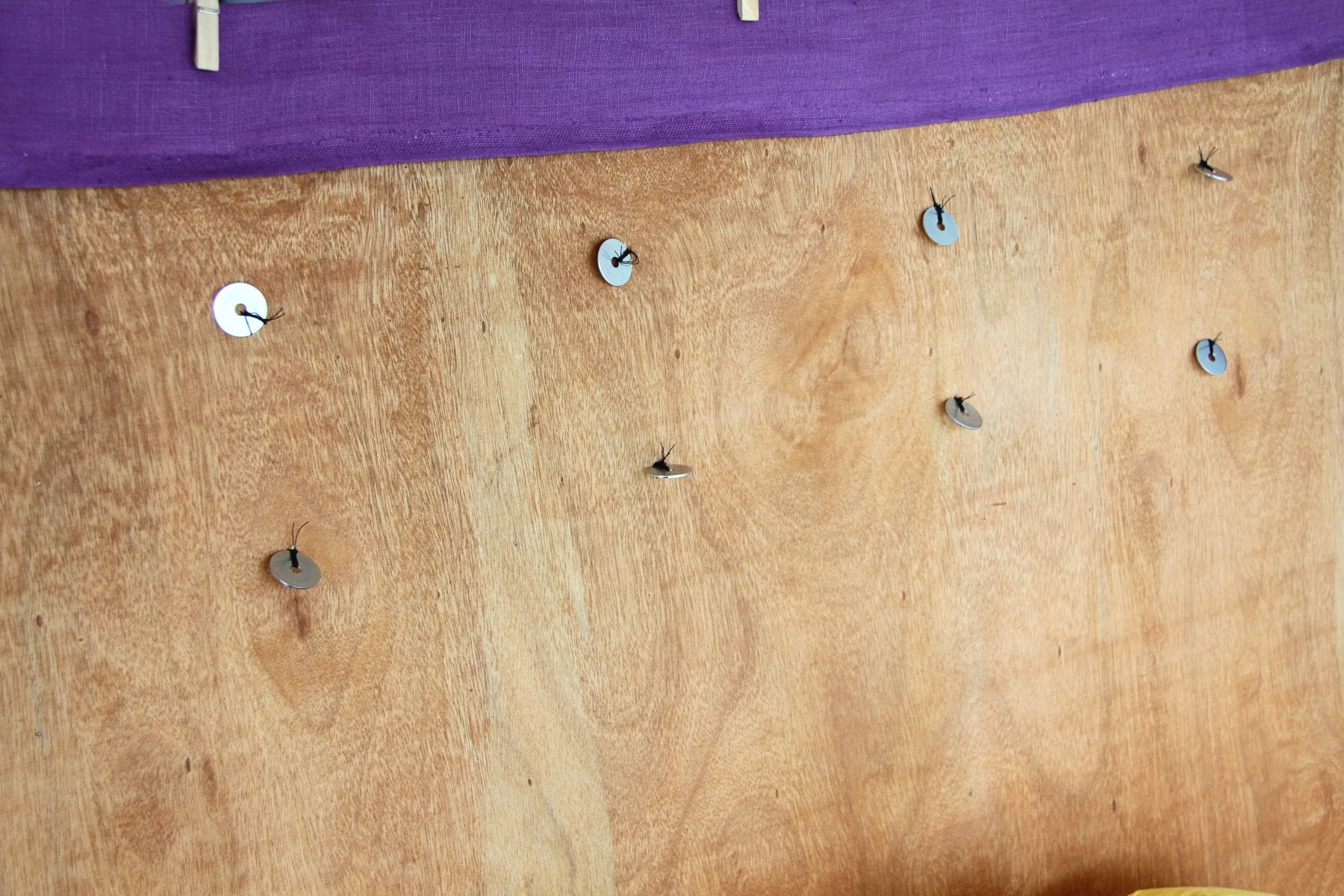 To keep the batting in place, I clothes-pinned the edges to the wood.