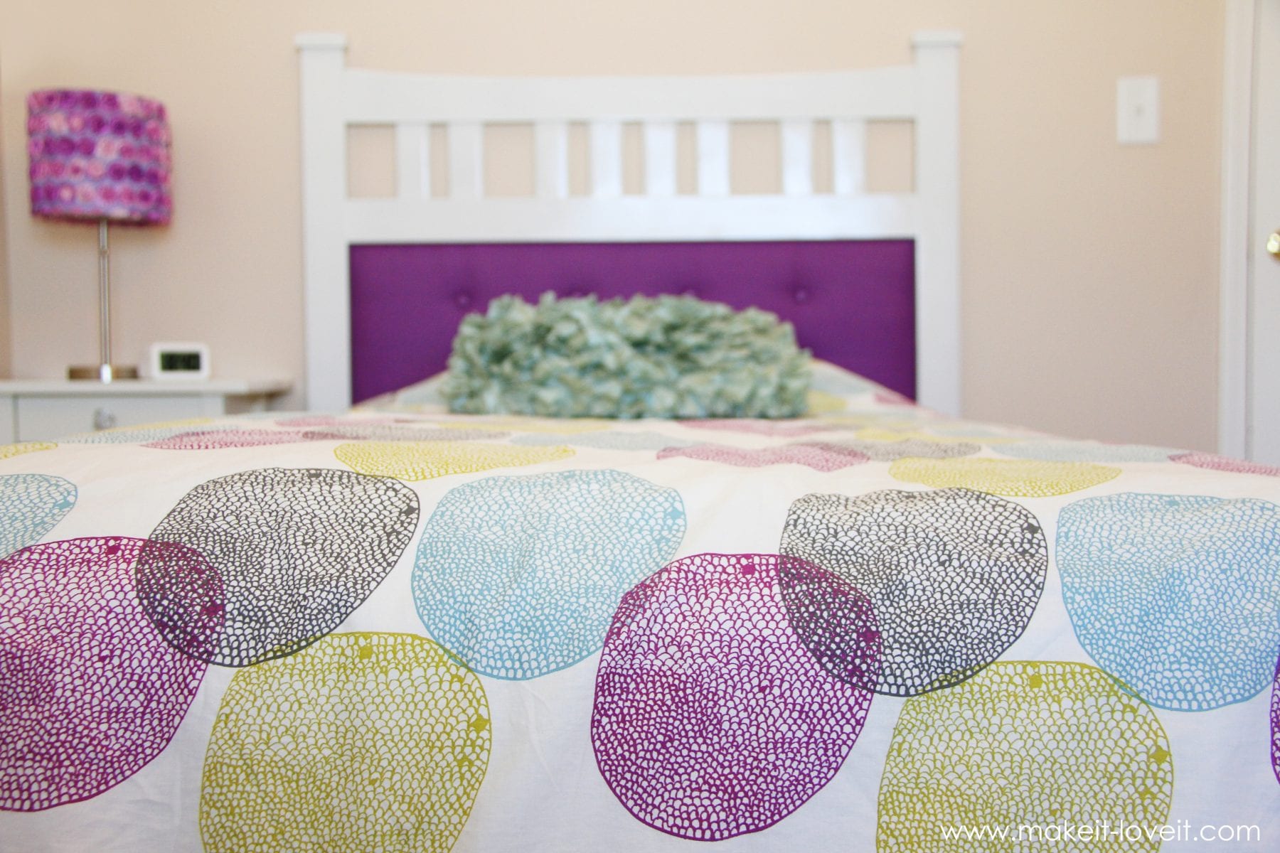 P.S… If you love the fabric of this duvet cover, I didn’t make it. But once I saw it here at Ikea, I had to get it for my purple-loving daughter. So there’s not actual fabric for sale (not that I know of)…..but this duvet cover was only $20. Cheaper than I could have made it with a cute designer print.
