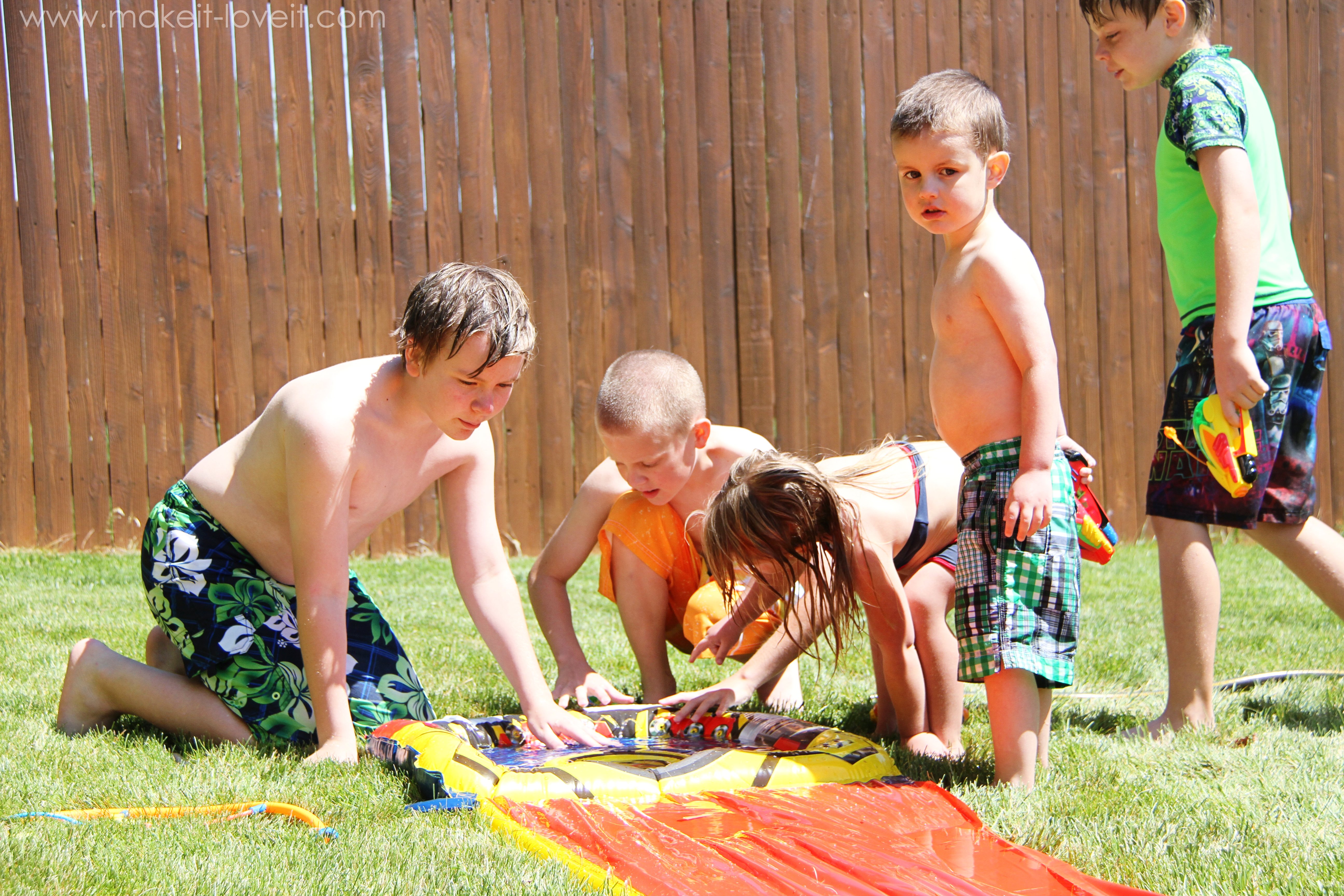 Then, it was time for a little slipping and sliding.  Oh, the memories I have doing the same thing on those hot AZ summer childhood days.