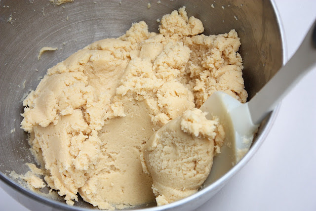Moving on. Mix the dry ingredients in really well. You will have a dough form, just like regular cookies. But it will feel a lot more sticky. That’s okay. Don’t add extra flour.