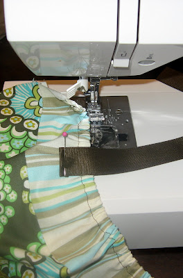 Now, thread your elastic through each end and sew each end of the elastic securely to the opening of each end of the casing. Keep in mind, the larger piece of elastic is for the top of your holder (so you can shove many bags in) and the smaller piece of elastic is for the bottom (so that you only pull one bag out at a time).