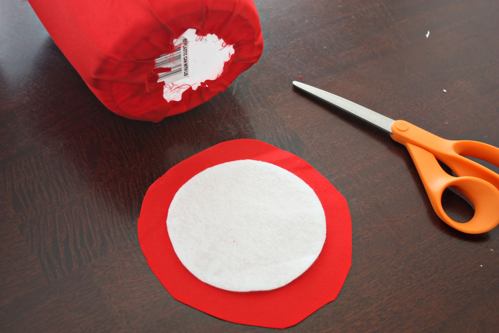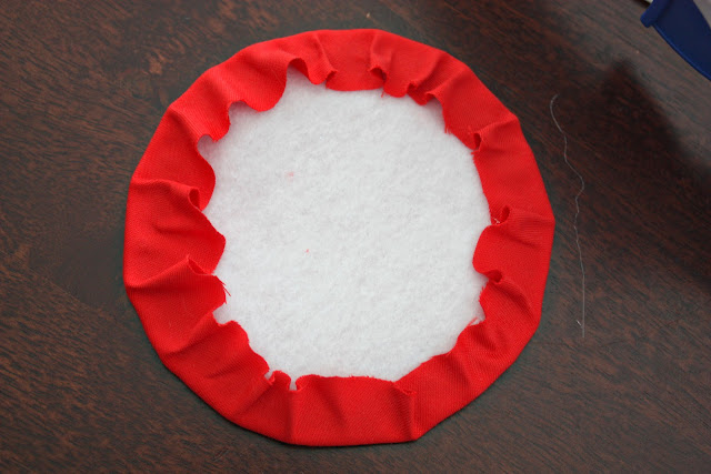 ……then glued down the edges of the fabric over the felt, trying to keep the shape of the felt circle as best as I could.