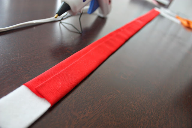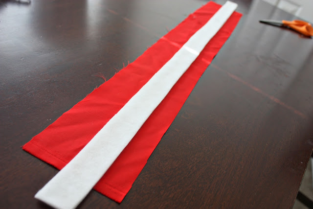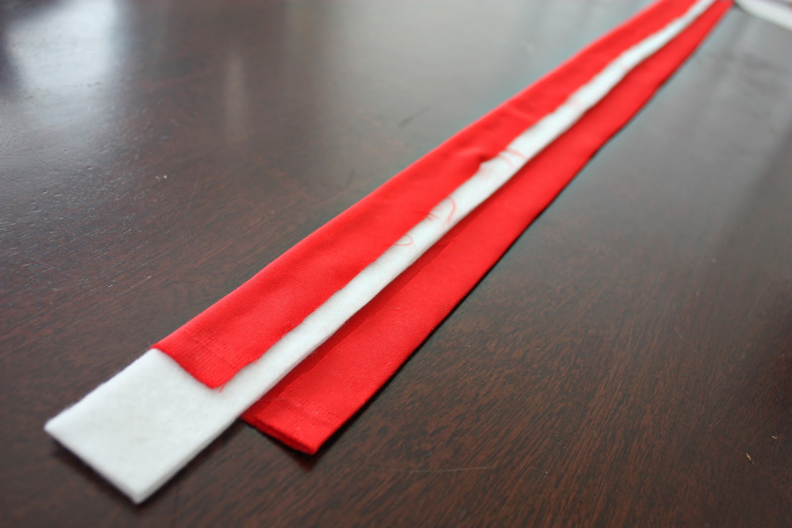 Then I cut a piece of matching material that was wide enough to wrap around the felt, plus a little extra.
