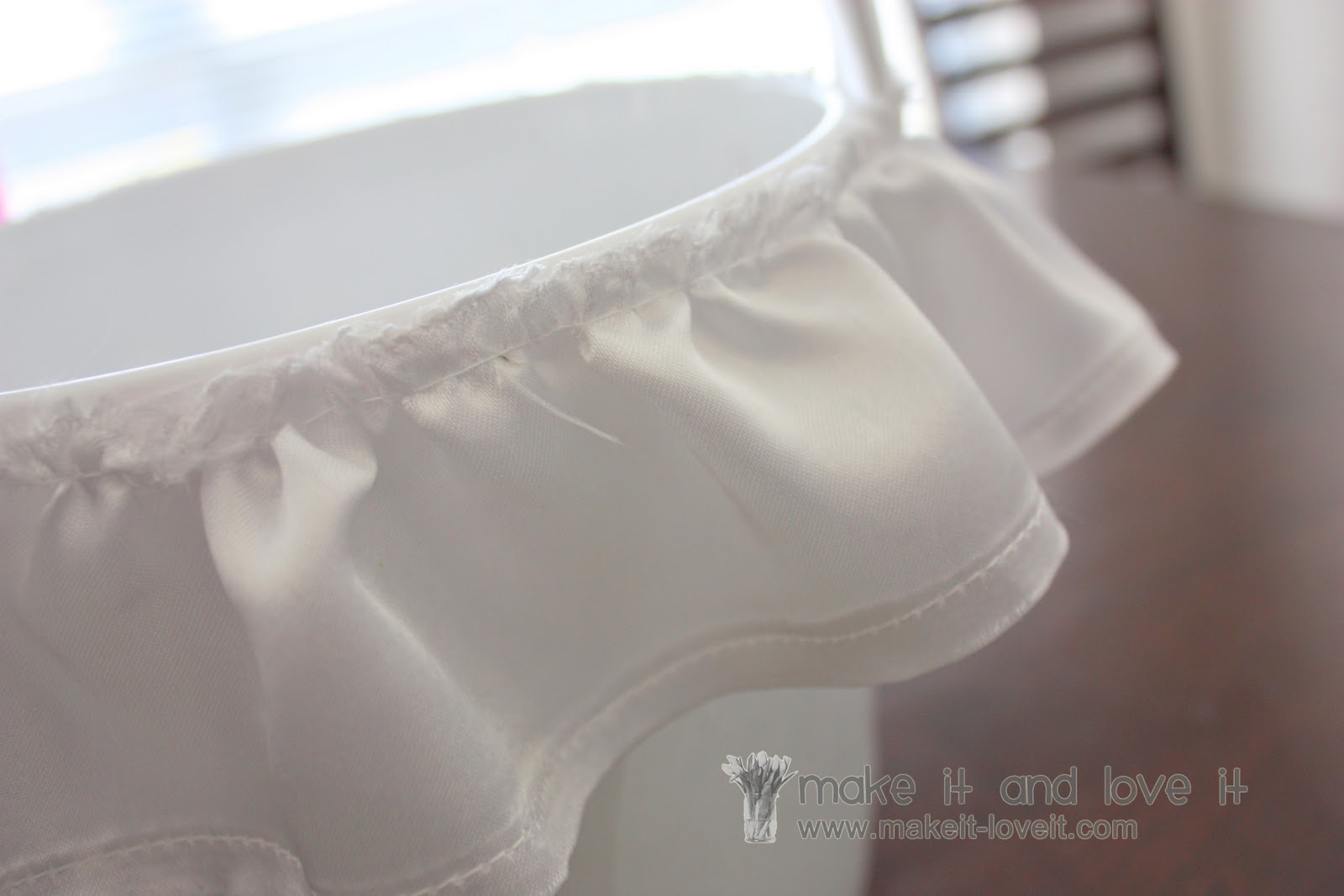 I used a hot glue gun for the majority of this project.  I only needed the sewing machine for the ruffle on the white bucket…..but if you don’t need a ruffle, this can easily be a no-sew project.