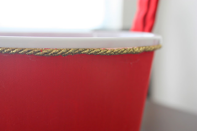 And added more of the cording to the top of the bucket, nicely sealing the raw edges of the top edge of the fabric.