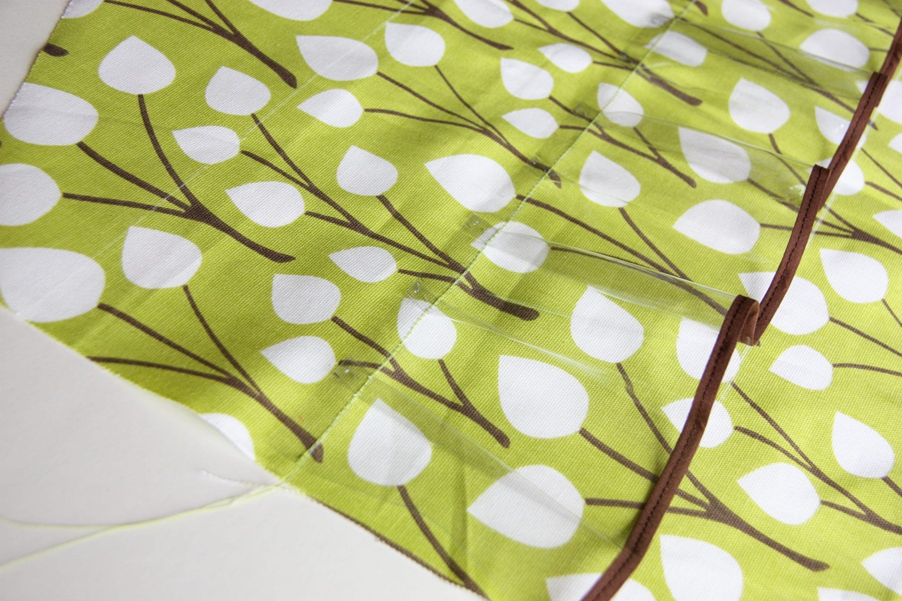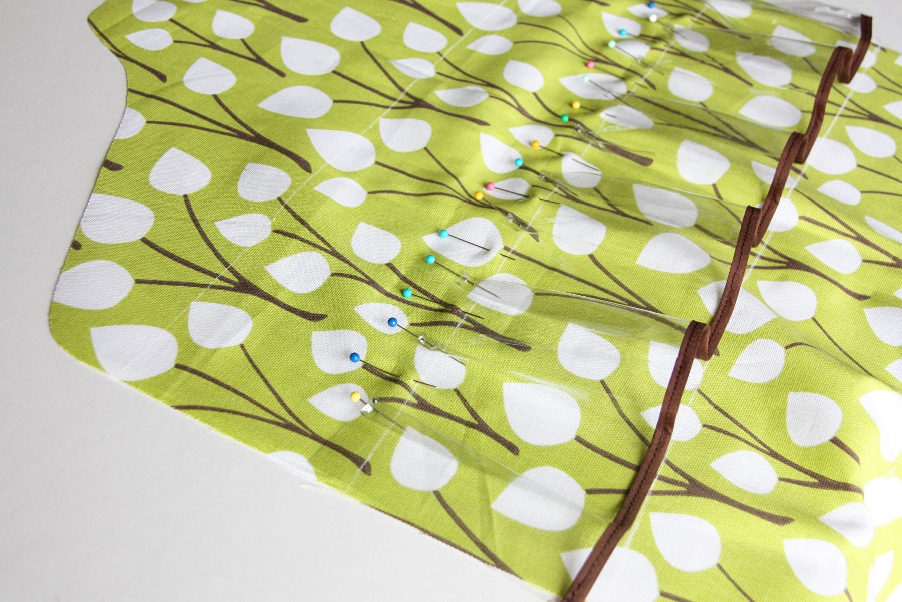 Also, be sure to leave long tails of bias tape at each end, so that you have enough to finish off the bottom.