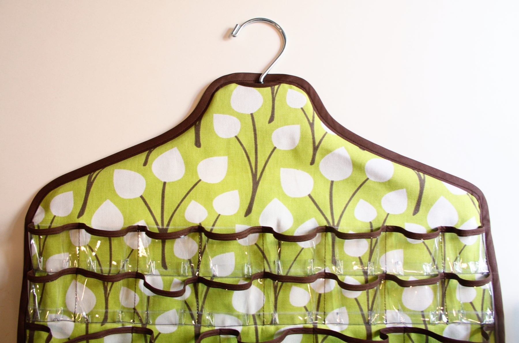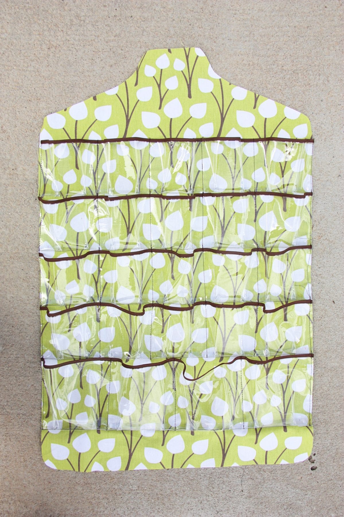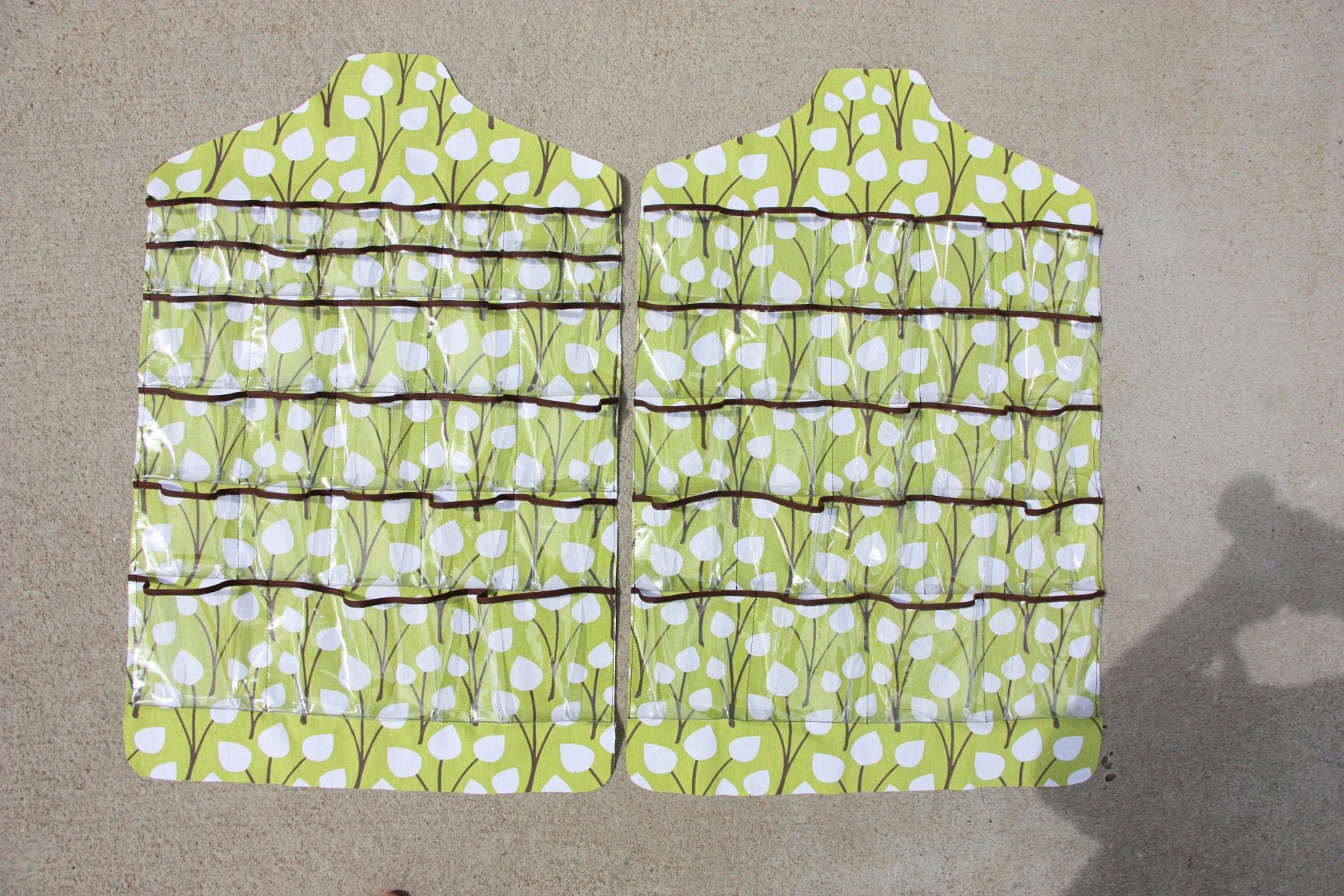 A double sided hanging fabric holder…….perfect for all of my orphaned jewelry pieces.