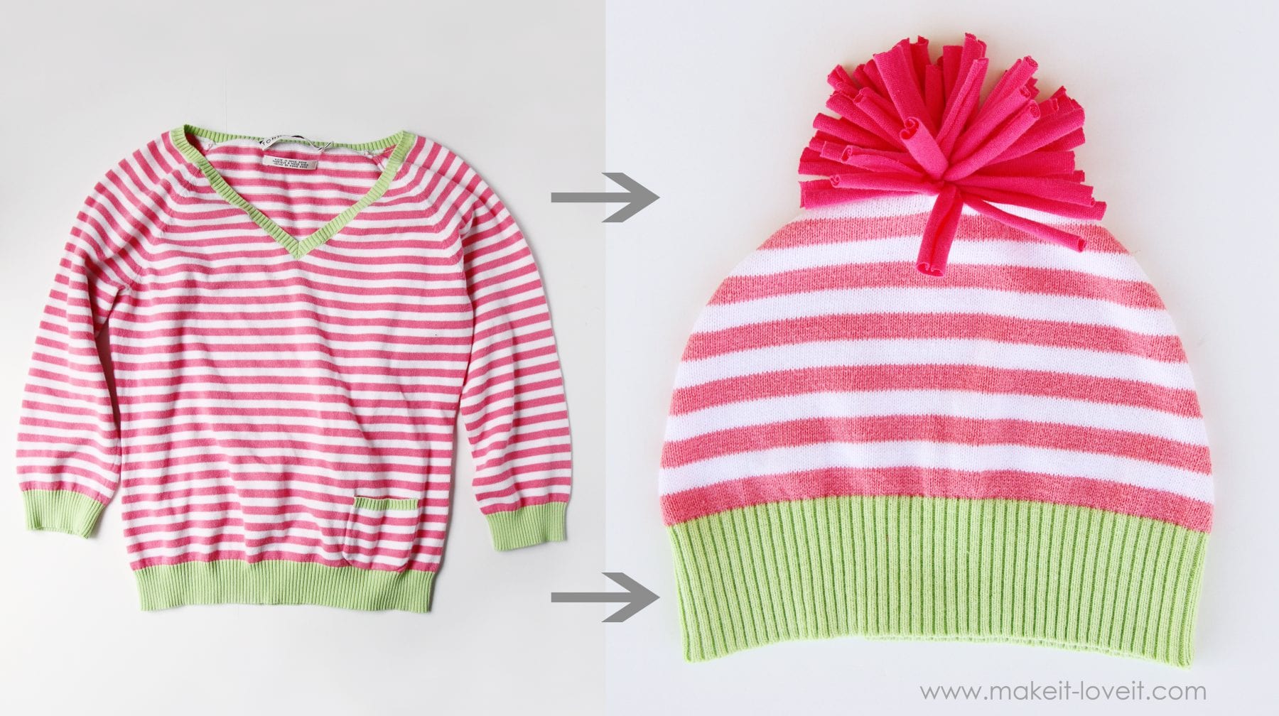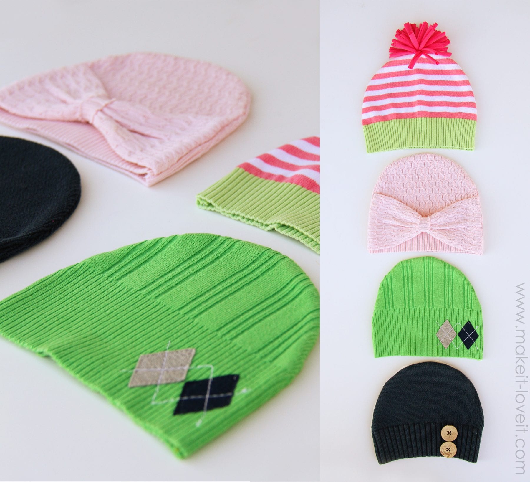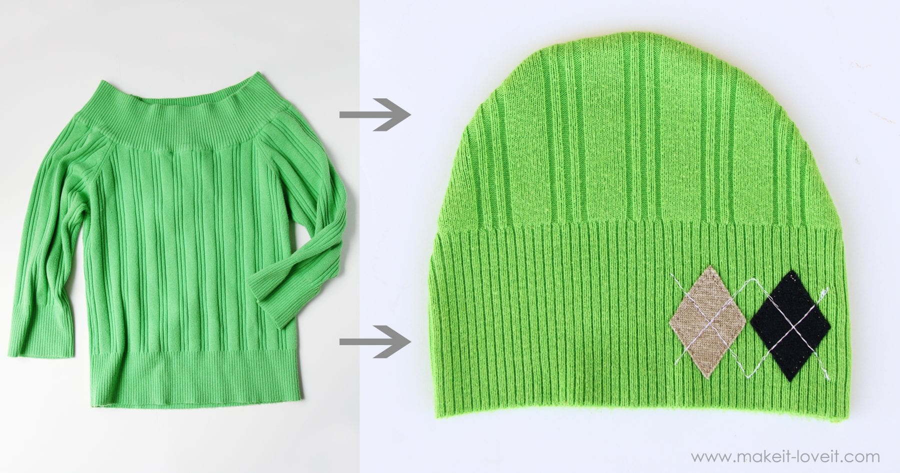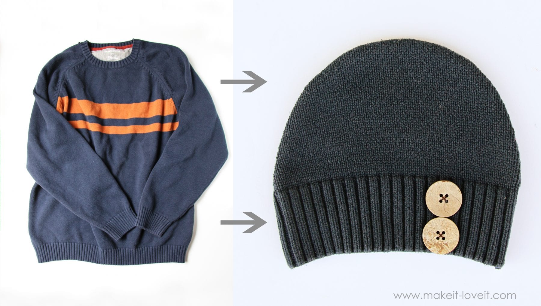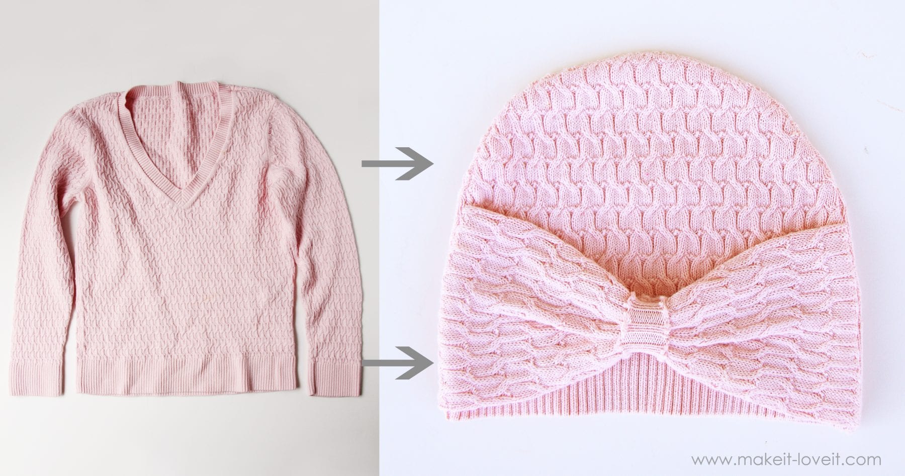 If you’d like to turn your own sweaters into little hats (even for you!), here’s how:
