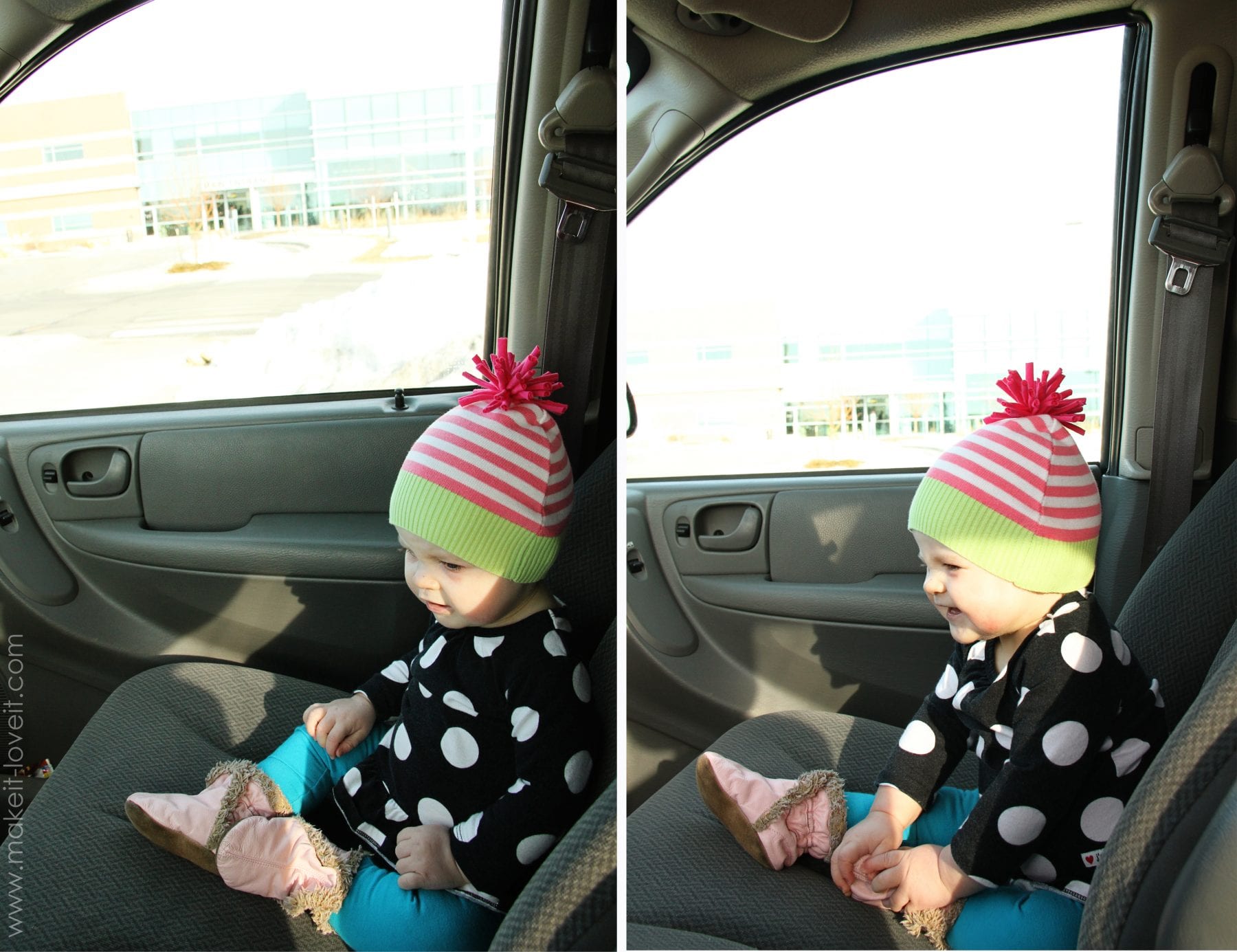 When we arrived to the Urgent Care………it still didn’t open for 15 more minutes.  So I plopped her up in the front seat with me, while we waited in the parking lot.