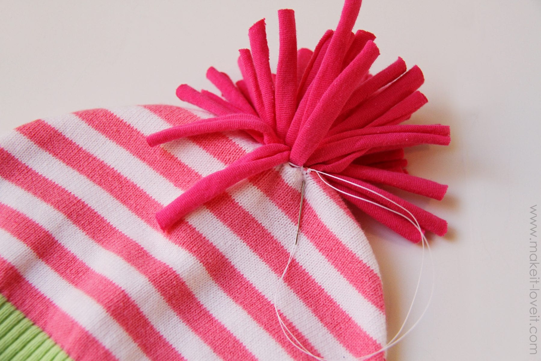 Then hand-stitch the pom-pom right to the top of the hat.