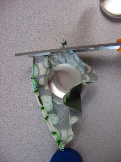 The kit explains how to put everything together and it’s about a 3 minute project. Really. Make sure to trim all of the excess fabric off around the edges but leave enough to be tucked in under the button back.