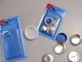 These hair accessories are super easy and turn out so darling. All you need is a package (or 2 or 3) of cover button kits. They are only $1-$2 at Wal-Mart and come in a few different sizes.