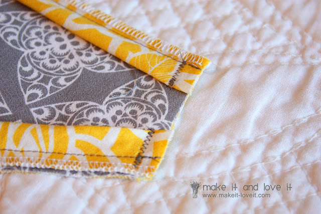 If you turn this piece over, you’ll see the square on the back side.  I trimmed the square with pinking shears, to help avoid fraying.  But you could also zig-zag the edges before attaching the square several steps ago.