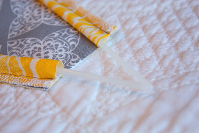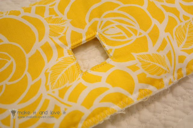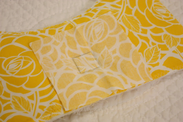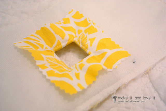Pull the fabric square towards the back, nice and snug, and pin in place. Then sew around the square opening.