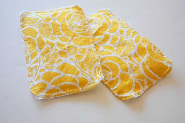 Then I placed the fabric square right side down, lined up the 2 squares, and sewed right on top of the traced square shape.