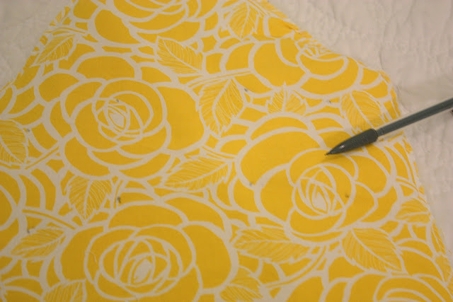 Mine had another piece of fabric that was used to finish off the opening.  So I recreated mine in the same way.  I used the original fabric piece (shown above) to draw the right square size on there too.