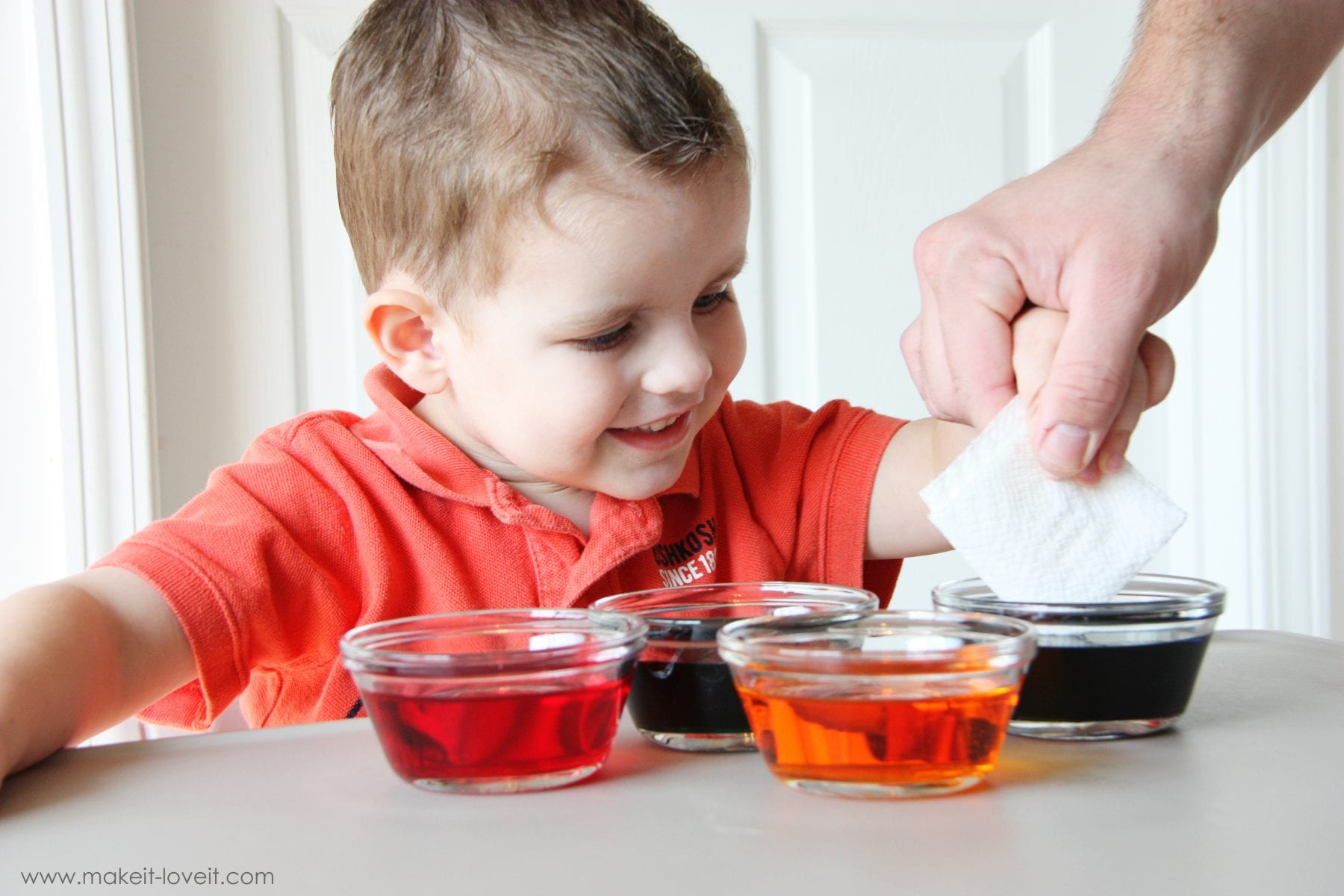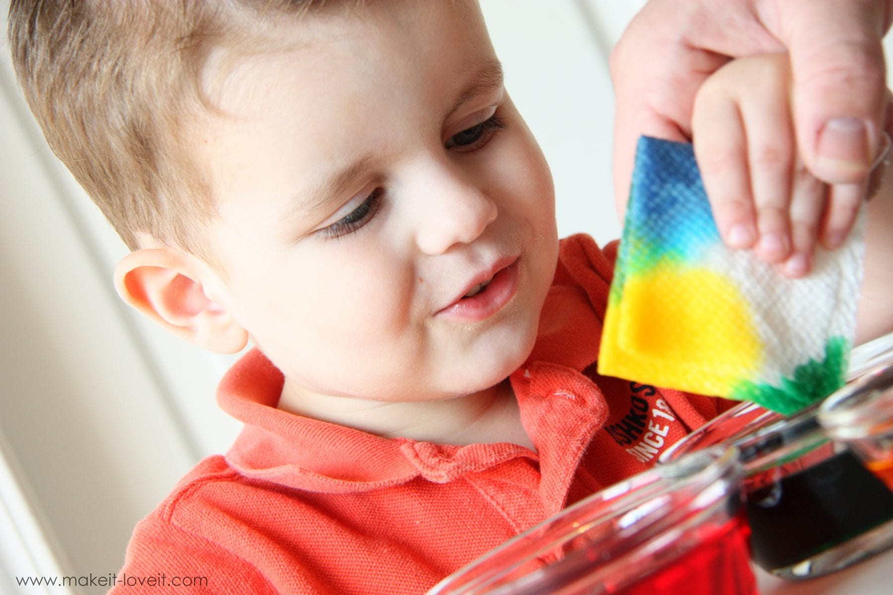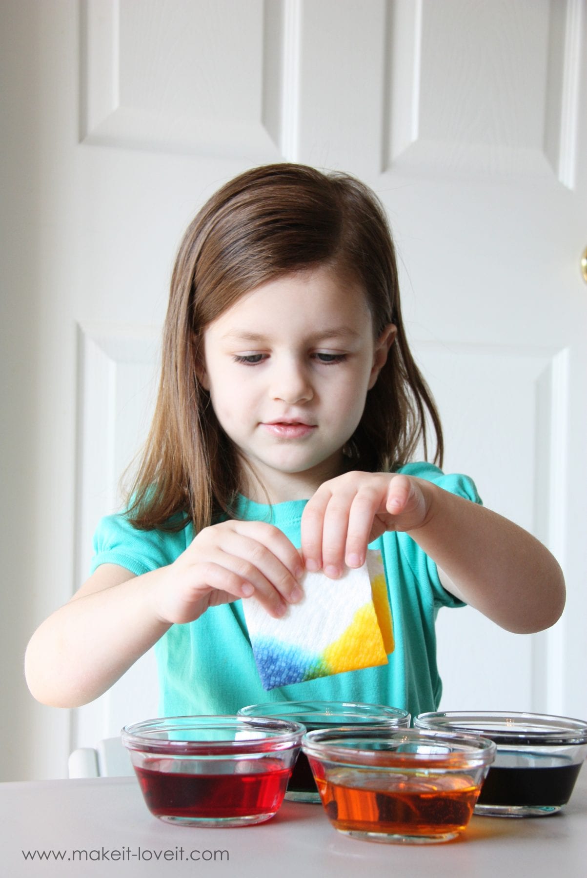 (Don’t dip the paper towel in too deep or for too long. Leaving part of the paper towel white in some spots also helps with the coloring and outcome. Let the kids experiment.)