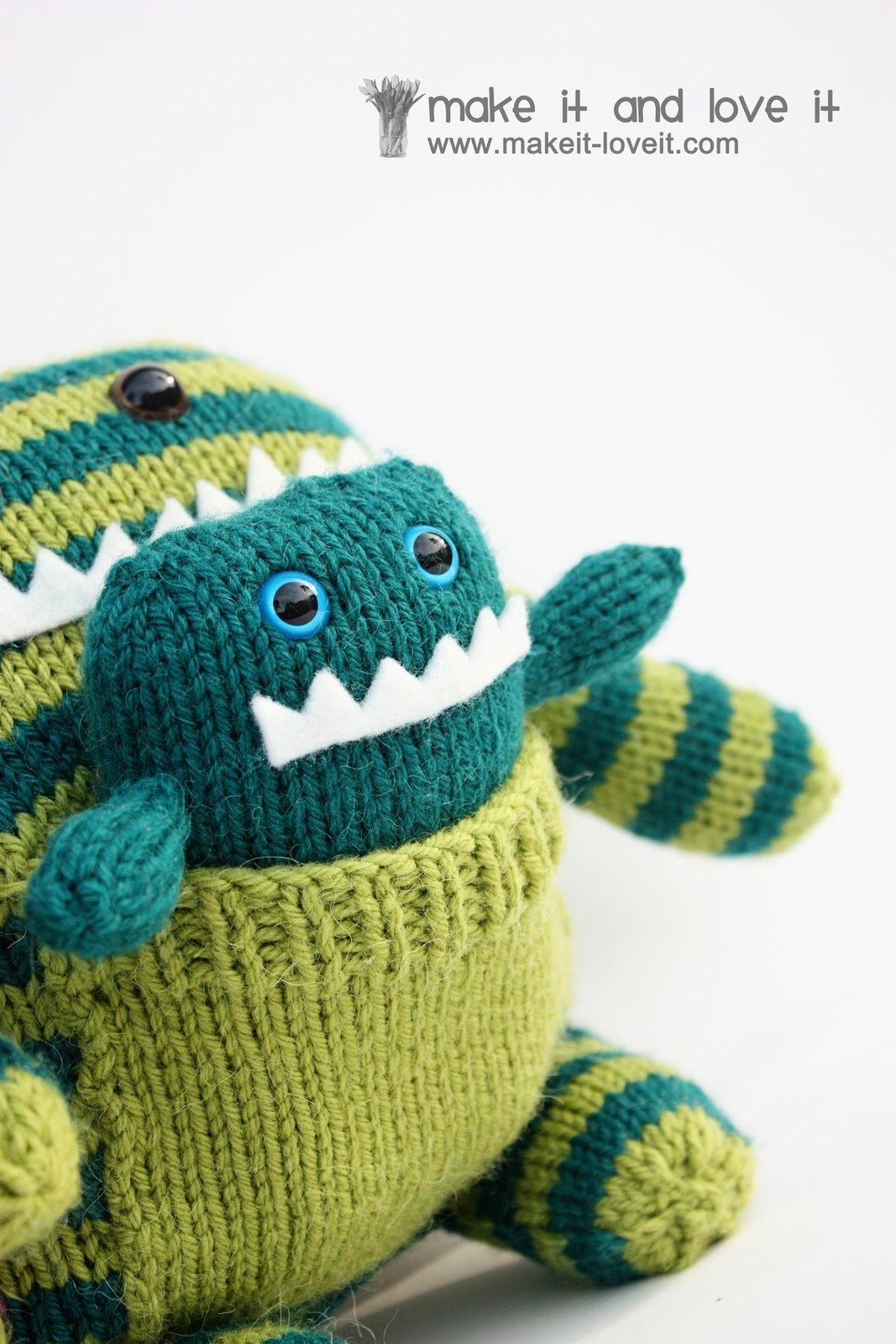 My kids are especially crazy about the fact that the little monster baby’s fit snuggly into the momma and poppa monster. Oh so cozy.