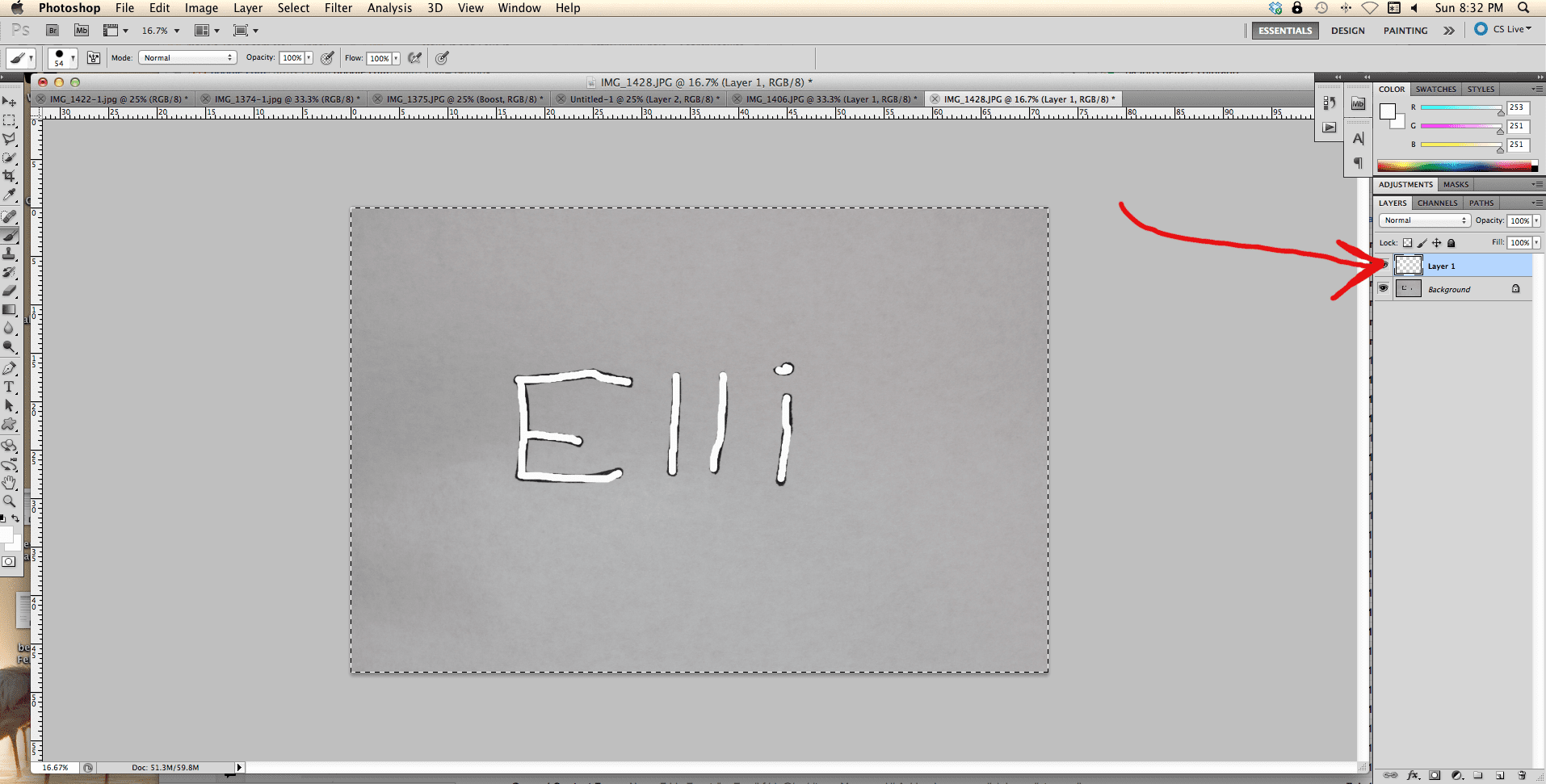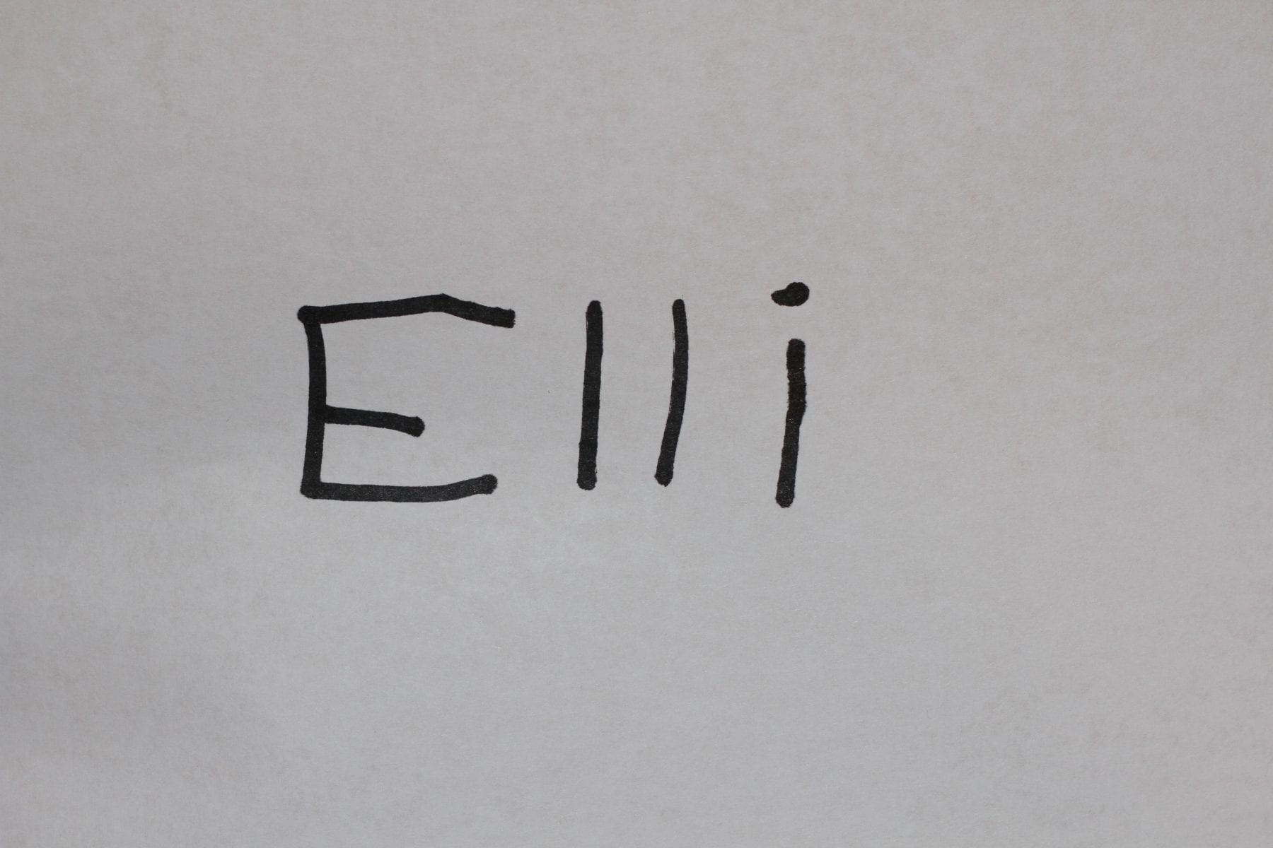 Now, if you have Photoshop and want to add your child’s name in their own writing, here’s what I did. (I knew there was no way that she could manipulate the computer mouse and write her name with the free-hand writing tool.) I asked my little girl to write her name on a piece of paper. Then I took a picture of it and uploaded it to my computer.