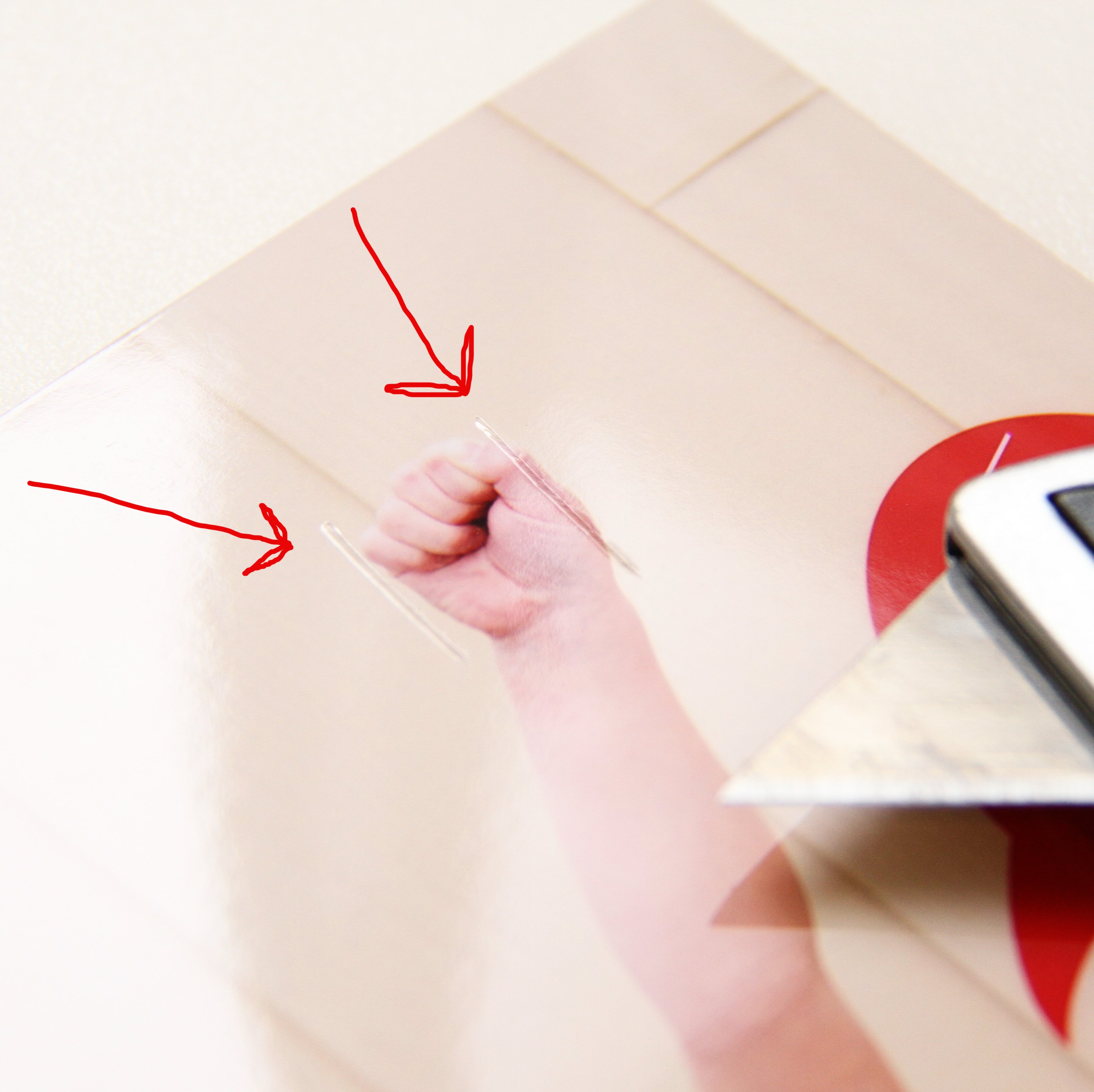 Once the pictures were printed out, I used a utility knife to make slits above and below their fists and then slid the sucker stick right in.