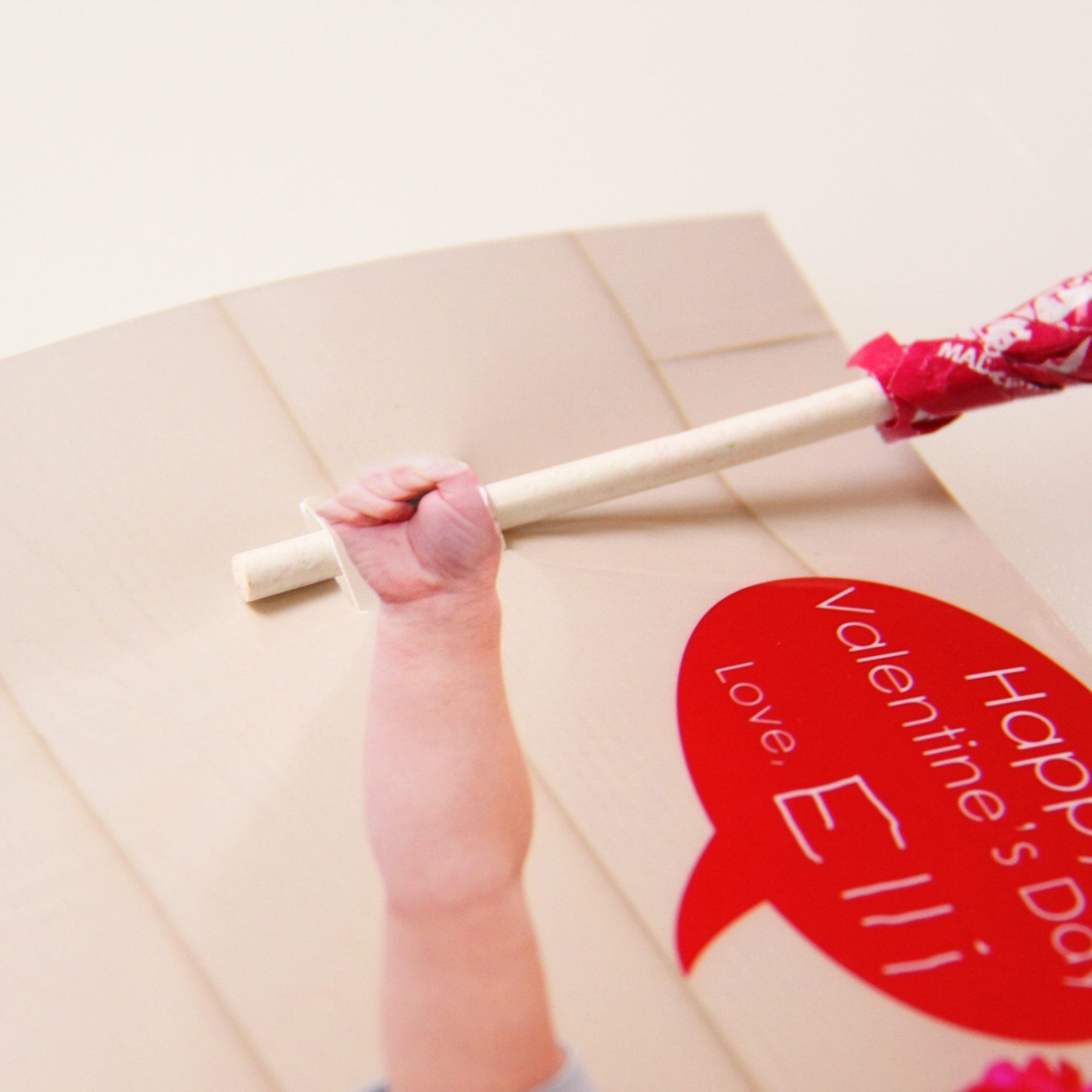 To get your little one to hold their hand out might be the trickiest part. But what worked last year and this year, was to tell them to punch their fist out straight……like they were punching a bad guy. (Okay, that analogy was only necessary for my little boy. Ahhh, boys.) Then, I would show them with my fist if they needed to move their fist up or down. And then they would mirror me. Ideally, you want the fist more towards you and in the foreground of the picture. And even better, is if the fist is nice and large because it’s closest to you……you know, like they’re hand is popping out of the picture, handing you the sucker. But after you take several pictures and the imperfect hand ones have a cuter smile, you ditch the perfect hand and go with the smile. Because darn it, those cute smiles are much more charming! :)