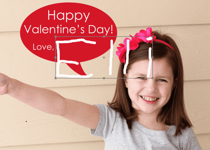 Then, I used my drawing tool (in white) and traced right over her name that she wrote. I tried to trace it as perfectly as I could, to keep all the charm of her 5 year old handwriting.