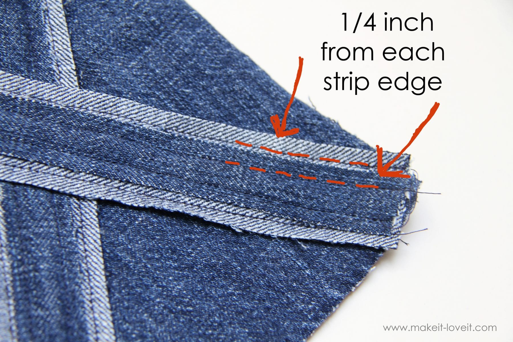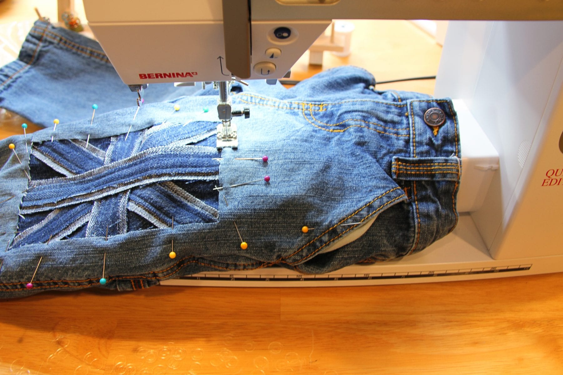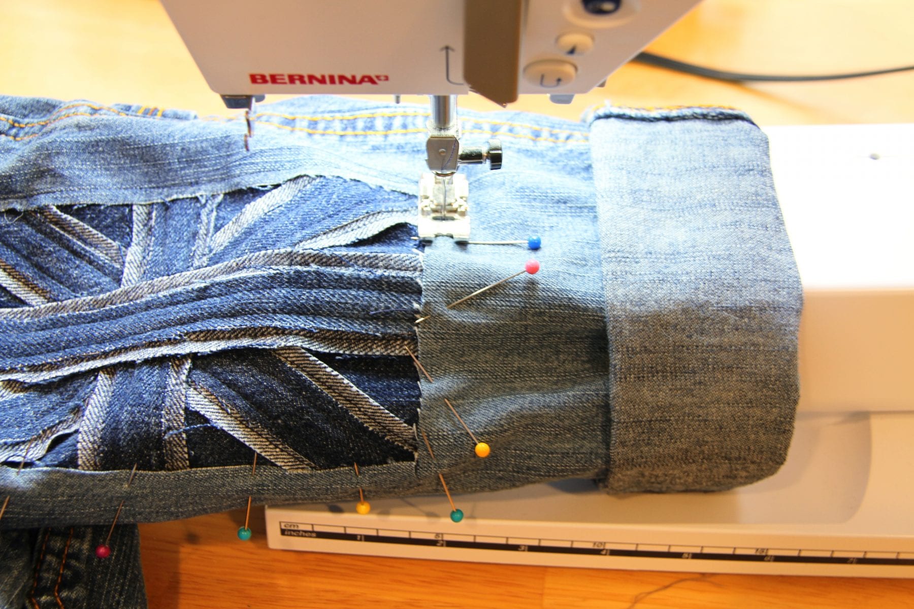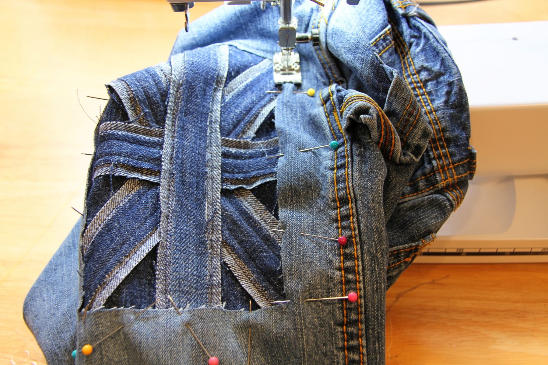 Oh, and I just used a regular old standard needle. The denim scraps I used weren’t terribly thick. But if yours are, and you only have your standard needle, just sew slowly.