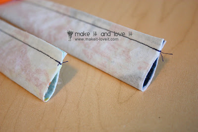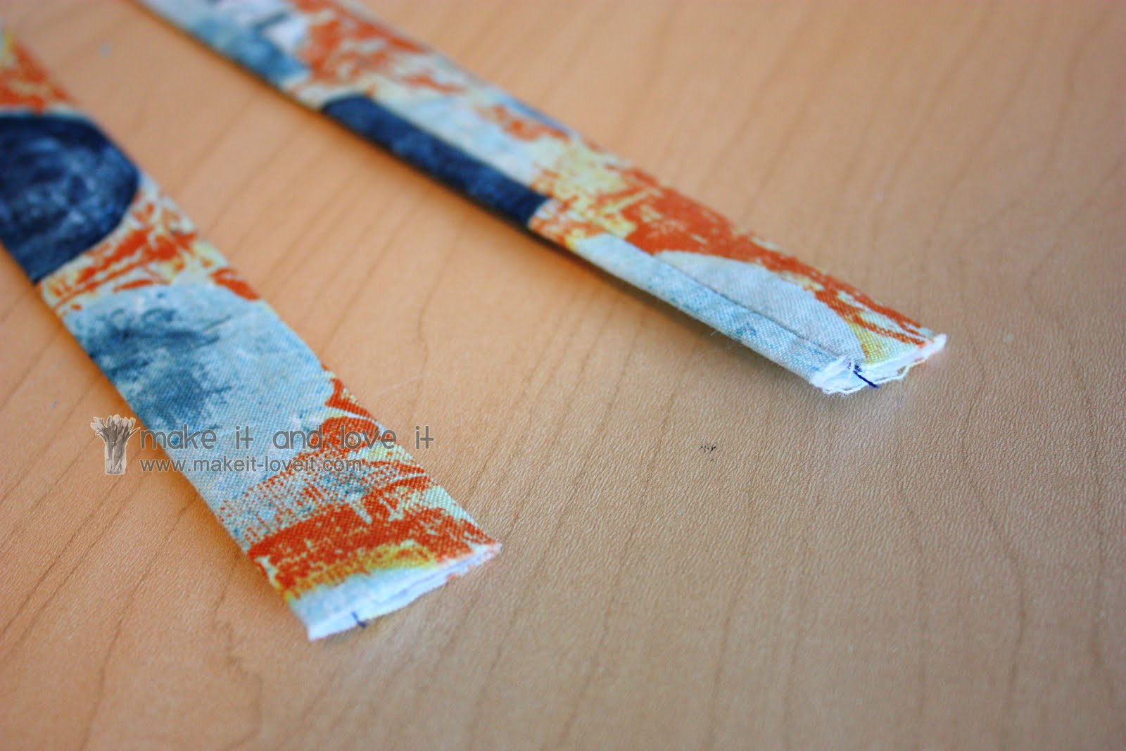 And then I folded the strips of fabric in half lengthwise and sewed the edges together, using a 1/4 inch seam allowance.Â