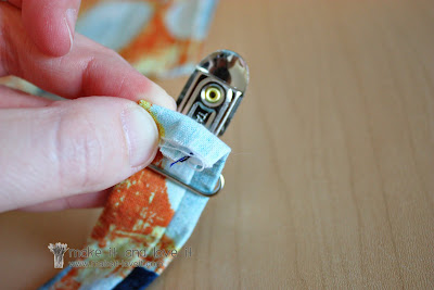 Then, I slipped one end of one of the tubes through the clip, folded the end over 1/4 inch……